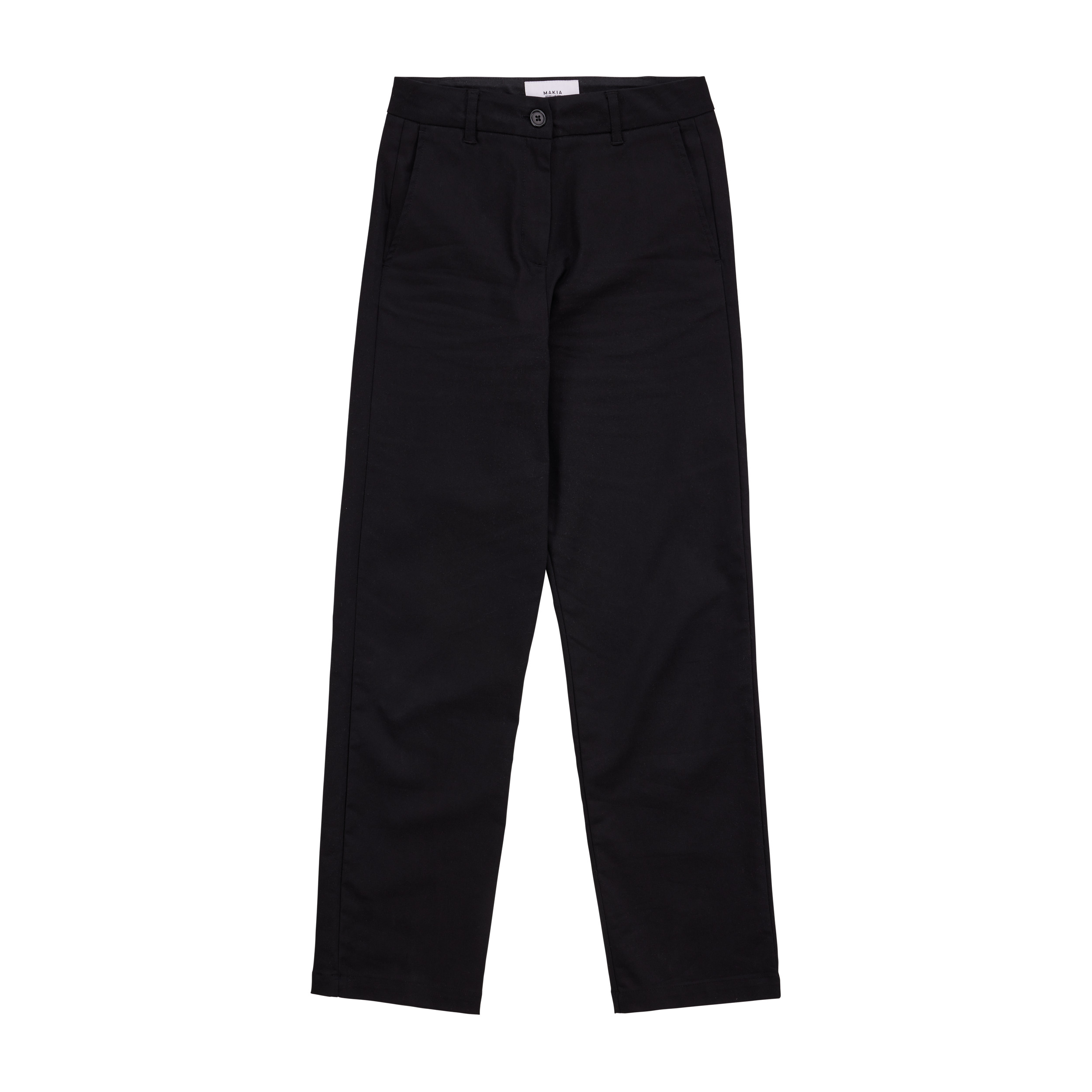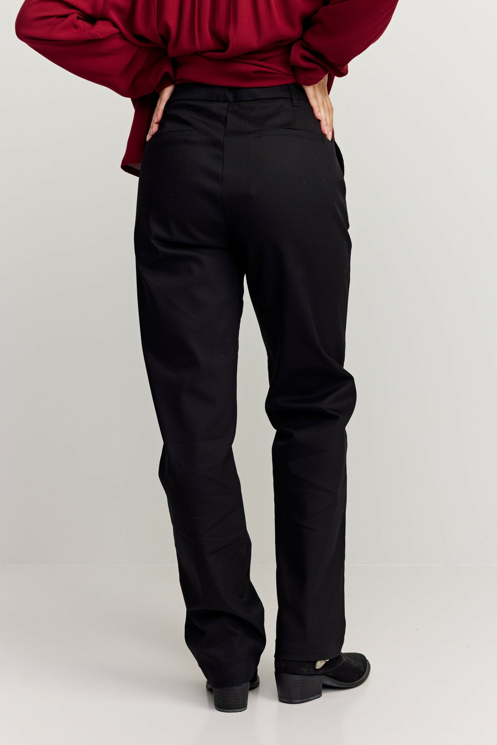 High-waist trousers with a regular fit and straight leg. Finished with an elastic adjustment inside the waist.