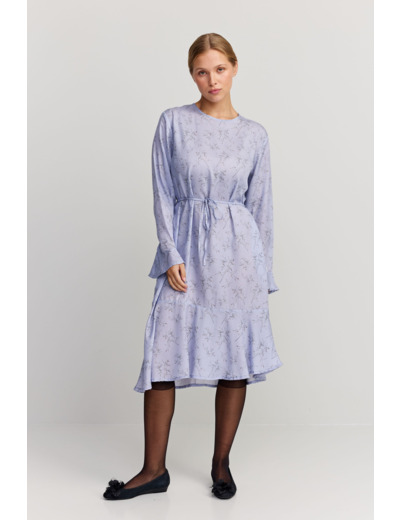 A knee-length dress with a frill on hem and sleeve opening. The Hay Dress features a belt on the waist and pockets on the sides. Made from 100% TENCEL™ Lyocell.