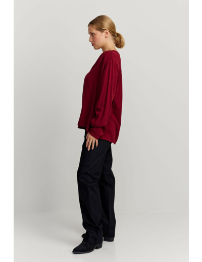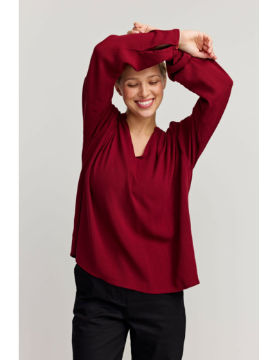 A regular fitting blouse with V-neck opening. Finished with a narrow cuff and button closure on sleeve opening. Made from 100% Ecovero™ Viscose.