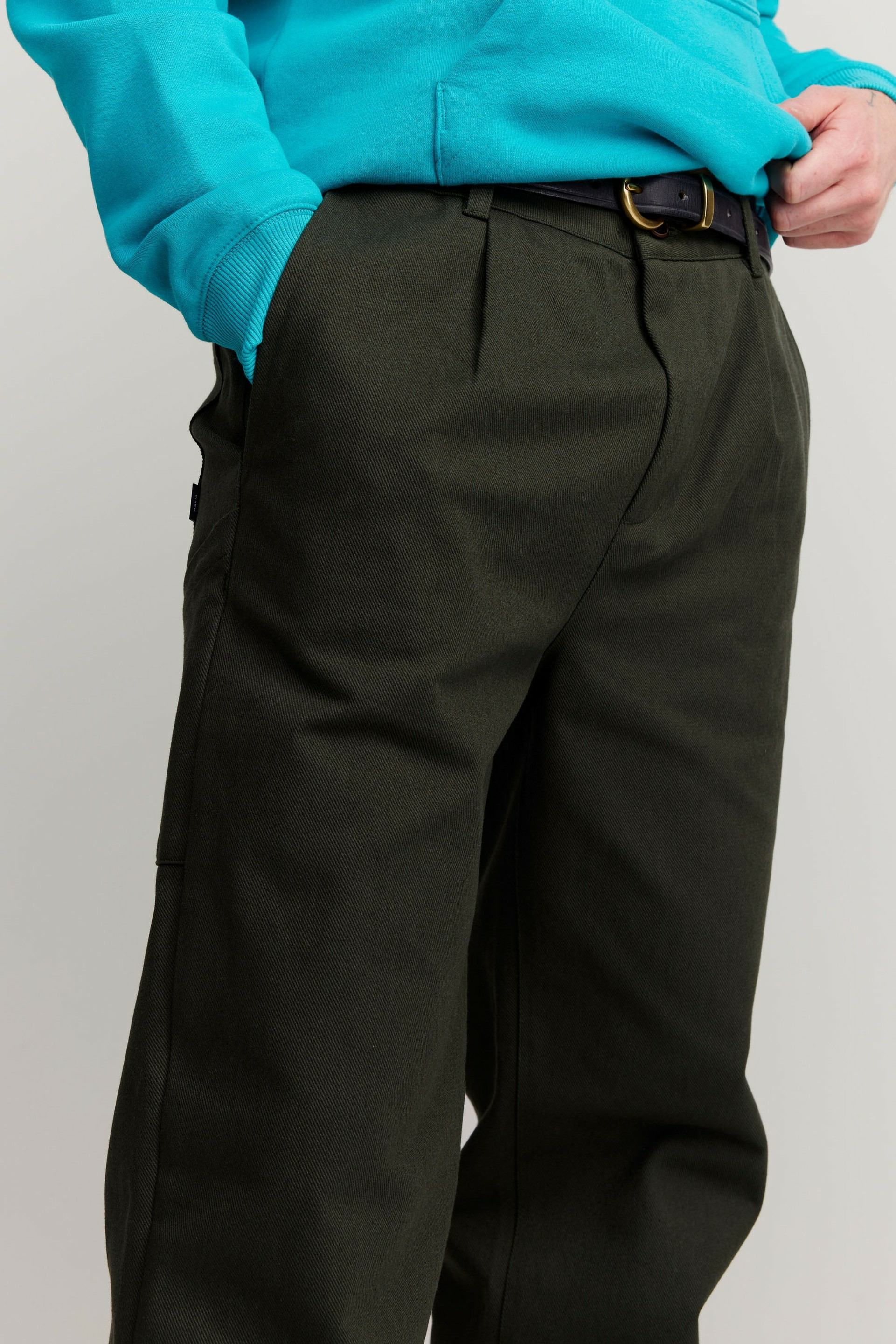 Regular-fitting trousers with a straight leg and pleats on the front. The Jalava Trousers are made from a firm cotton twill fabric and feature a regular waist.