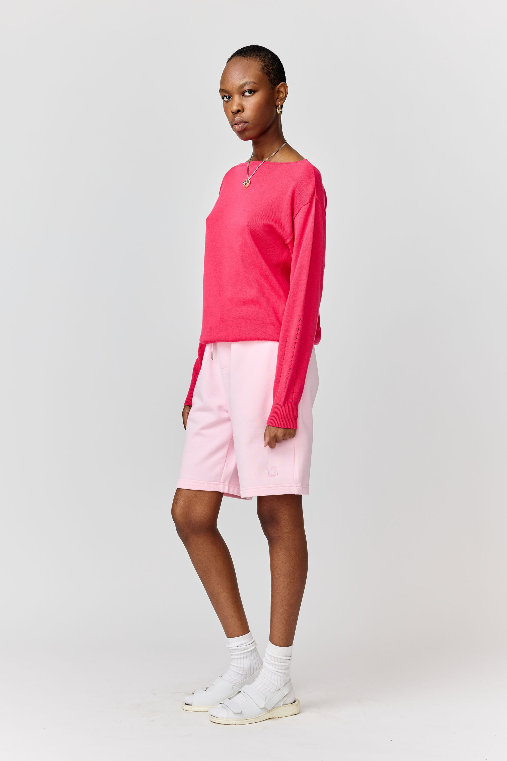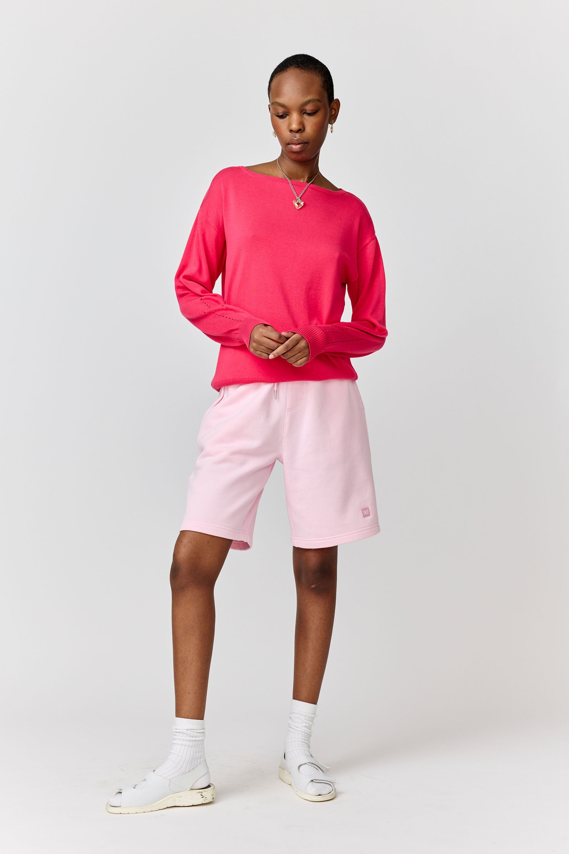 A hip-length cotton knit with a regular fit. The Joy Knit has a boat neck opening and a soft and smooth feel.