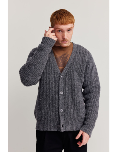 A regular-fitting cardigan made from a blend of wool, nylon, and lycra. Wear it by itself or use it as a layering piece.