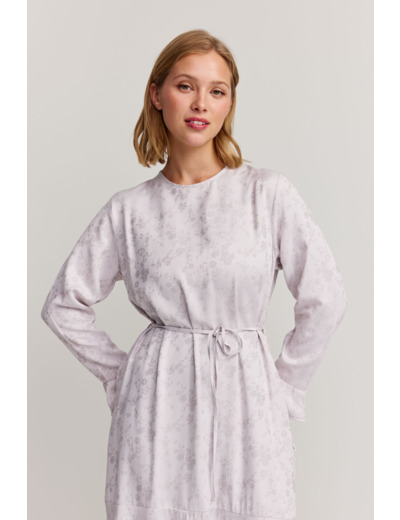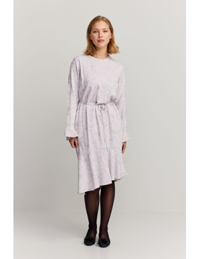 A knee-length dress with a regular fit. The Maisie Dress features a belt on the waist and frill details on the hem and sleeve openings.