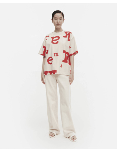 Made of firm organic cotton jersey, the Welig t-shirt has an oversized fit and it is printed in the Marimerkki pattern. The O-neck has a wide rib.