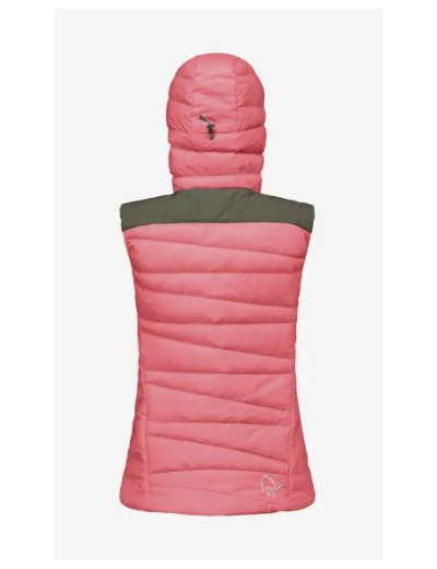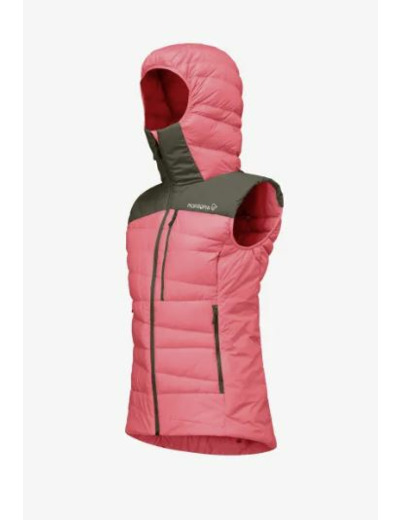 The vest is filled with high-quality, RDS-certified 750fp down (55g i men’s L/44g in women’s M). The sides and neck have been outfitted with synthetic insulating to prevent heat loss in colder conditions. The shoulder piece is insulated with a combination of down and recycled synthetic material to ensure durability and maintenance of loft in this exposed area.