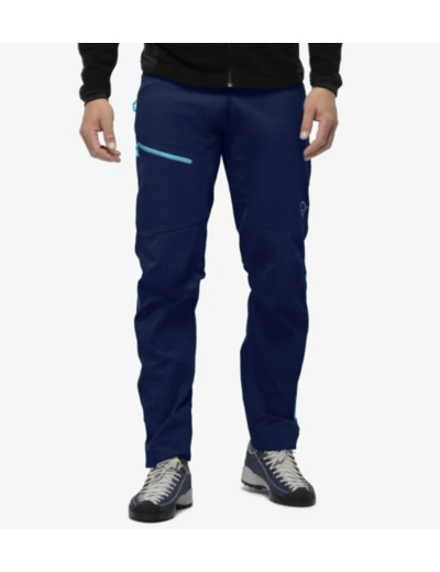 These pants have a regular fit with articulated knees to improve mobility during vertical movement. They can be worn over hiking boots and light ski touring boots