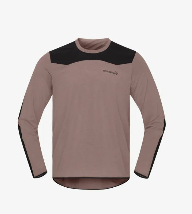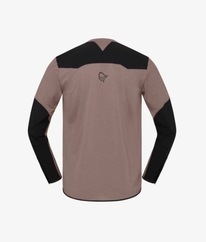 The main material is 100% recycled polyester 113 g/m2. It has been treated with HeiQ Fresh FFL anti-odor treatment. HeiQ Fresh FFL is a bio-based amino sugar polymer that is silver-free and not an antimicrobial. It removes the fat and protein from sweat, thereby eliminating the ability of the bacteria to grow and therefore reduce odor. On the elbows and cuffs, we use a ripstop 85% recycled nylon/15% elastane Flex1 blend 162 g/m2.