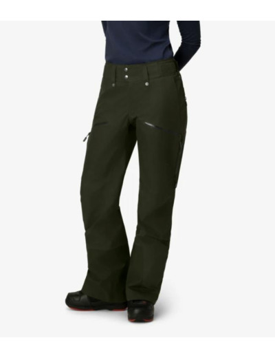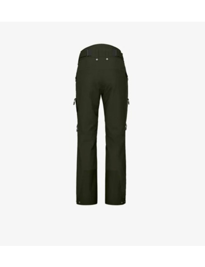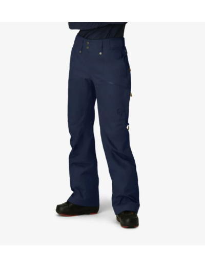 Key features include: A custom fit waist system, side ventilation with powder mesh, Vectran reinforced around the ankles to protect for ski edges, two zippered front thigh pockets one with mesh inside pocket for phone, two hand pockets, snow-gaiters, snap-in powder skirt possibility from Norrøna ski/snowboard jackets, possibility for zip-in bib.
