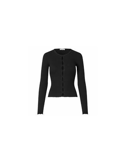 The Envii ENMALAWI LS TEE is a long-sleeved tee with a round neckline and slim fit. It is made from soft and stretchy viscose with a ribbed texture and features cut-out slits on the front. A scalloped hem on the sleeves and at the bottom rounds off the design.