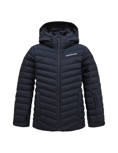 The JR Frost ski jacket is designed for peak performance, featuring a thick and comfortable construction suitable for temperatures down to -20 degrees Celsius. It is made with premium 90/10 duck down/feather insulation, ensuring exceptional warmth and is water-repellent and windproof, making it ideal for resort skiing.