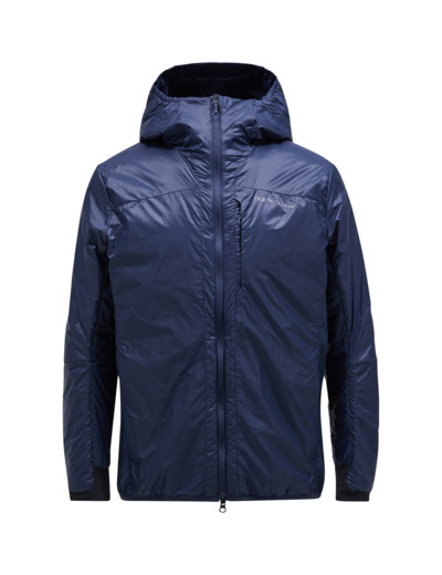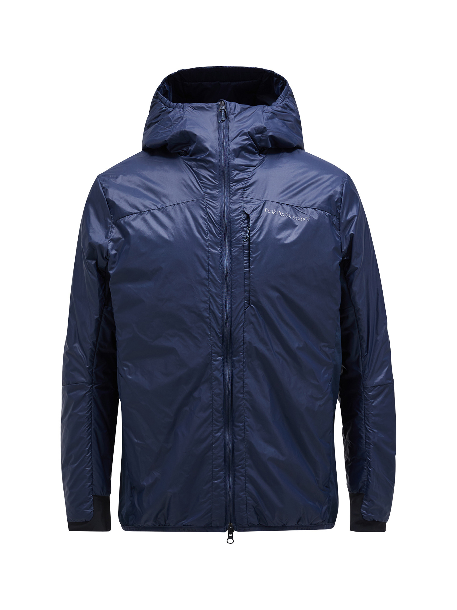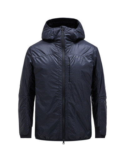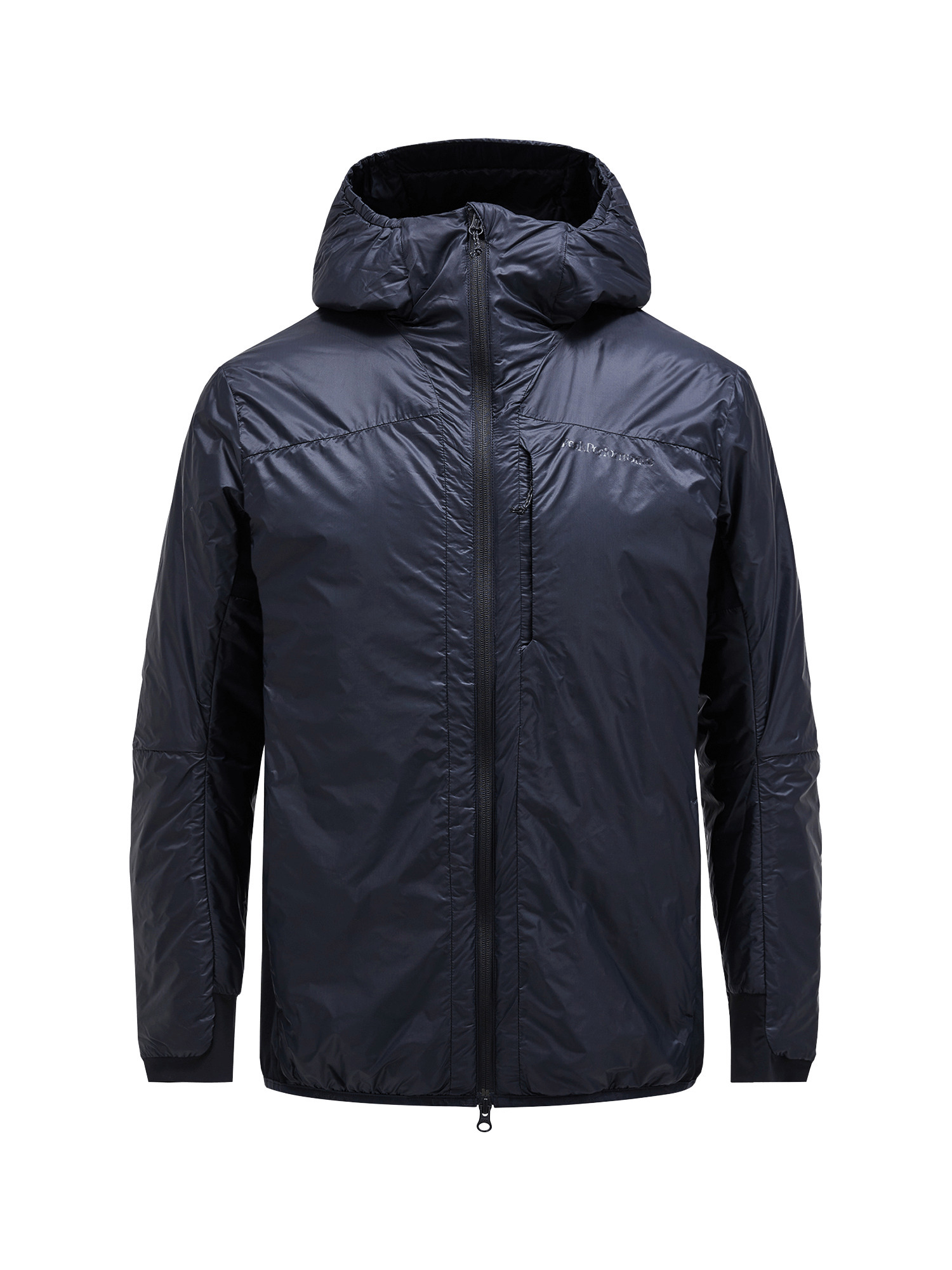 A trusted companion for lightweight warmth during high-intensity activity, this padded jacket with stretch panels for breathability and movability was developed in close collaboration with our athletes and mountain guides. The packable and functional design features details a 2-way front zipper, a hood that fits with or without a helmet, and multiple storage pockets. A jacket so versatile, you can wear it as an outer, insulation, or belay layer.