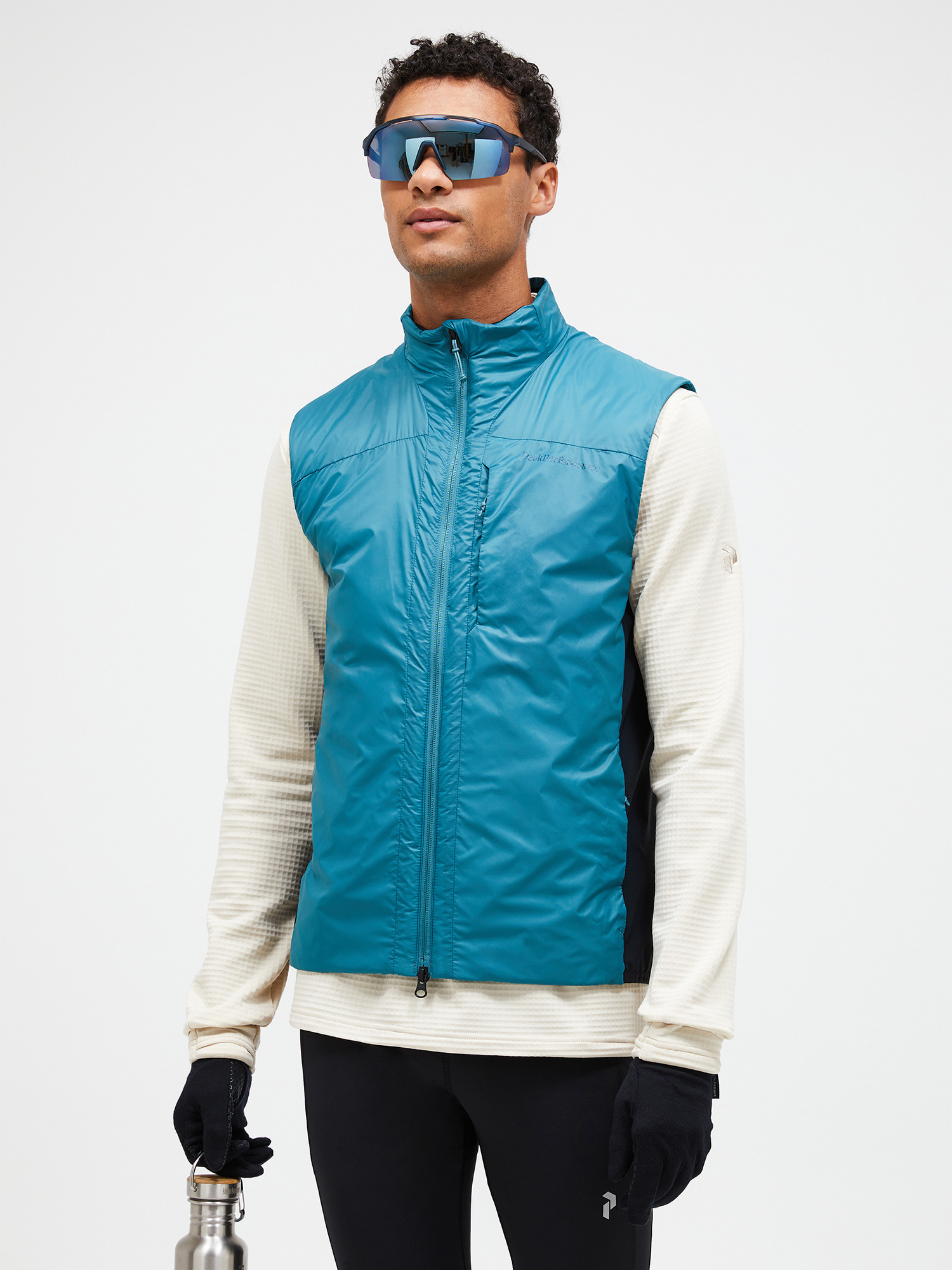 A trusted companion for lightweight warmth during high-intensity activities. This padded vest with stretch panels for comfort and movement was developed with the expertise of our athletes and mountain guides. The packable and functional design features details like a 2-way front zipper, low-cut collar, and slightly thinner padding than the jacket version, making it ideal for golfing, skiing, and everything in between.