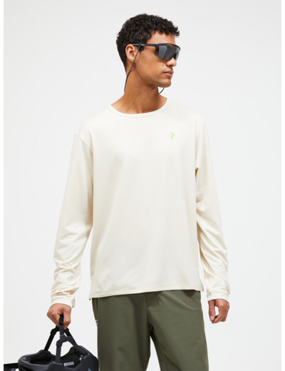 A super-comfortable long-sleeved t-shirt for any type of trail activity on wheels or on foot. Cut for a relaxed fit in a moisture-wicking and quick-dry fabric with a raised grid structure on the back to keep it from getting wet and sticking to you when you sweat. Wear it as a standalone piece or as a layer for extra warmth.