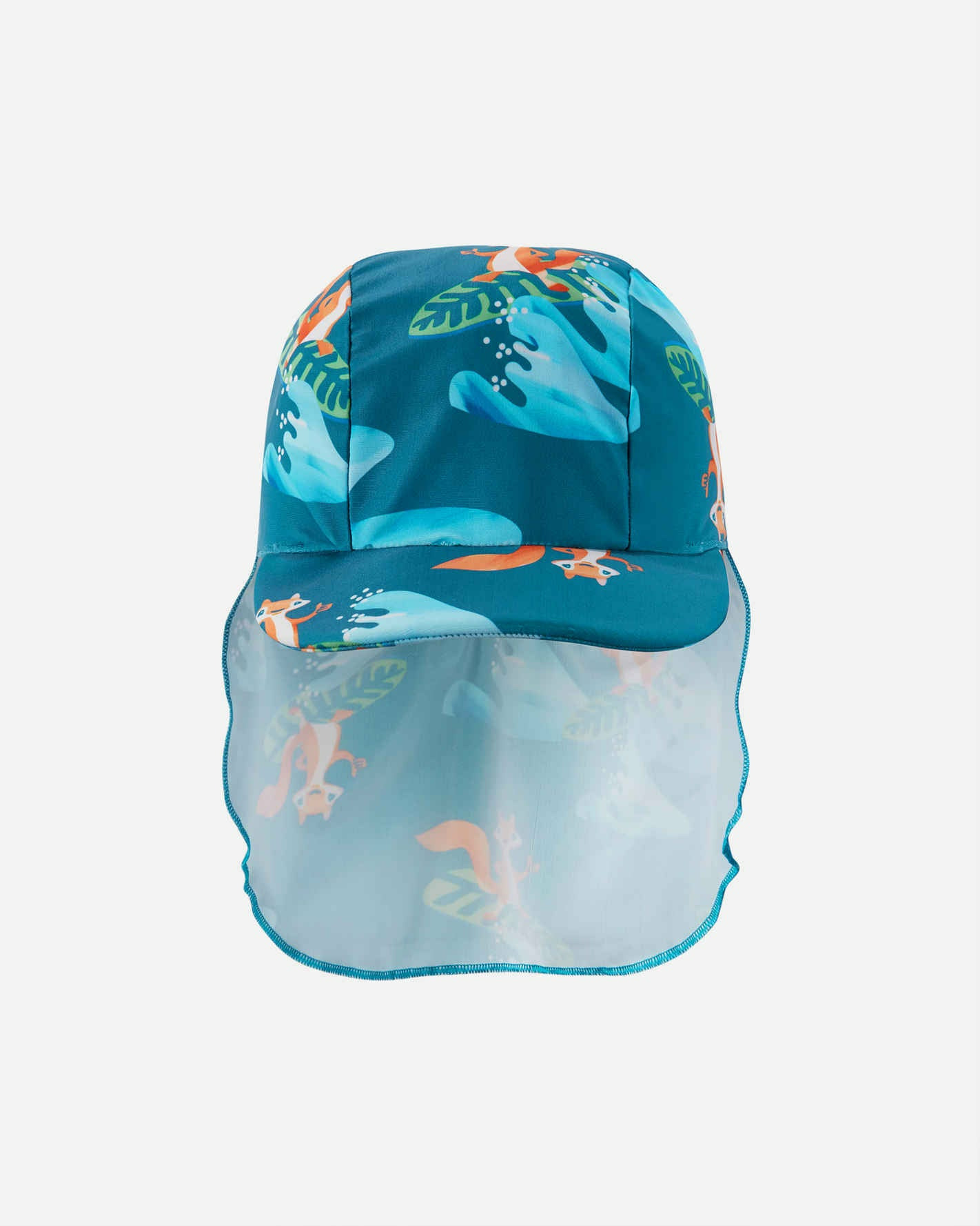 A children's summer hat that protects from the sun, with good UV protection. A long and wide back brim and a protective visor.