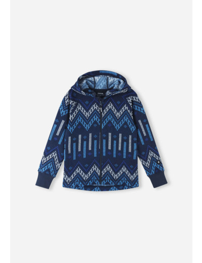 The super popular children's fleece hooded jacket is a great choice for a mid-layer and feels wonderfully soft against the skin. The material effectively warms, but also breathes and dries quickly. The full-length zipper speeds up dressing, and the chin guard protects against zipper chafing. Two side pockets. The trendy hoodie features a printed pattern and a fixed hood.