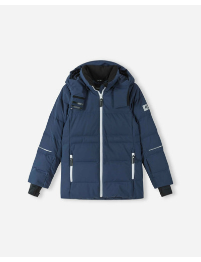 The children's ReimaTec down jacket Aligas is designed for active children's winter. This padded jacket is made of waterproof and windproof, breathable material that also repels dirt. The jacket's waterproof down insulation keeps your child effectively warm even on cold winter days. The flexible hem and cuffs with elastic inner cuffs ensure comfort and mobility. The snow lock at the waist prevents snow from getting inside, and the adjustable hood is removable for safety. The jacket also features zippered pockets and a ski pass pocket on the sleeve, making it particularly convenient on the ski slopes.