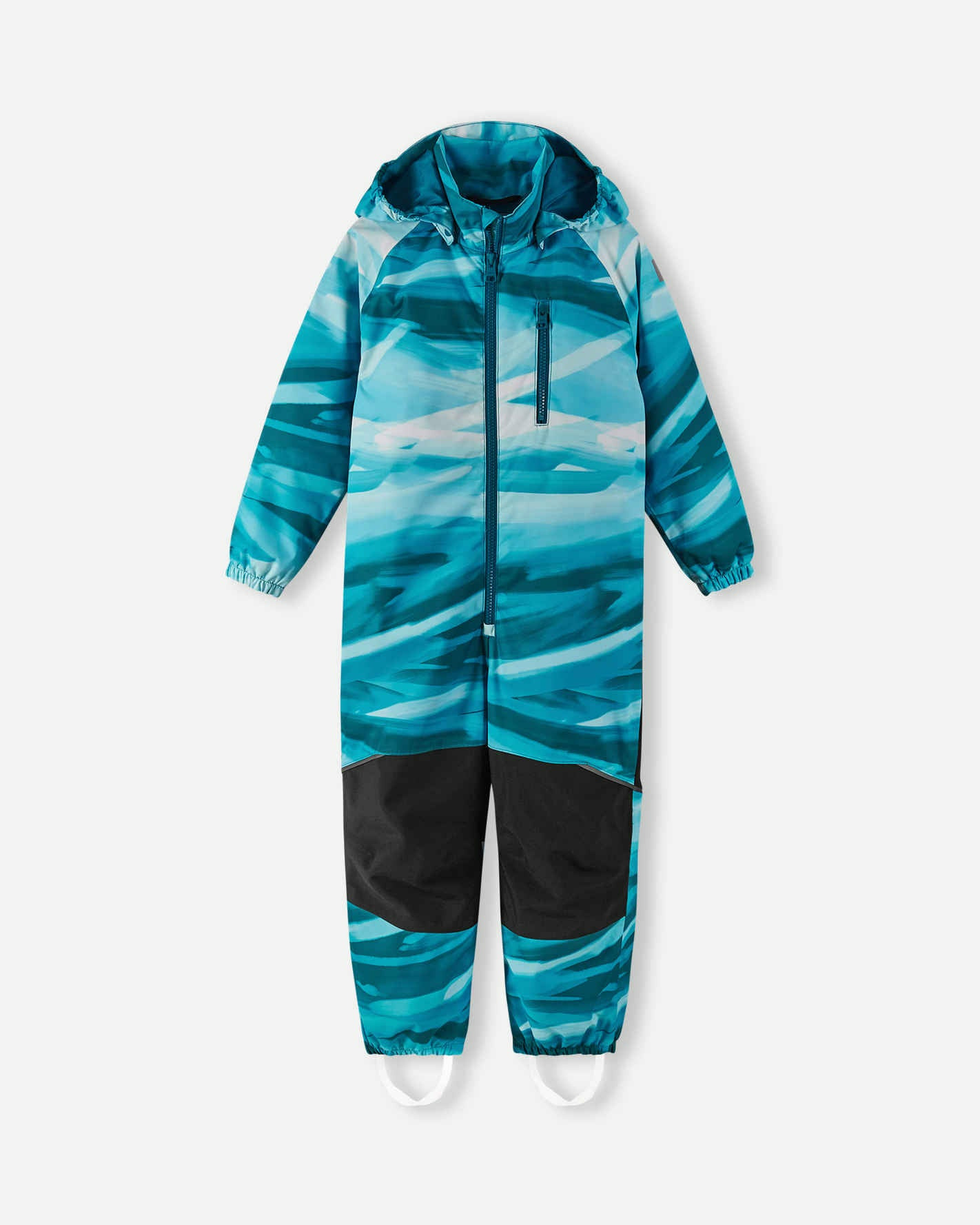 The children's waterproof mid-season overall Kirmala doesn't need weather forecasts, as it protects your child comfortably, rain or shine. The overall's waterproof and windproof, dirt-repellent material and taped seams ensure staying dry. Durable reinforcements on the legs and seat extend the lifespan. The smooth lining in the sleeves and legs and the mesh lining in the upper part add comfort when dressing and moving. A safe, detachable hood, elastic cuffs and leg openings, and two zippered pockets make this overall a practical choice. Reflective details enhance visibility in the dark, and the elastic waistband at the back improves fit. The overall also features detachable, durable silicone foot straps that keep the leg openings in place. Invest in a quality mid-season overall and let your child enjoy outdoor activities comfortably!