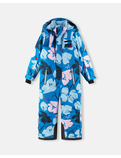 Fully waterproof and durable ReimaTec insulated overall, with all seams taped for waterproofing. Durable reinforcements at the leg openings. The material containing recycled fibers is also windproof and breathable, ensuring the child stays warm and dry without overheating. The smooth polyester lining slides well when dressing and feels comfortable with a warm mid-layer garment. The overall has an adjustable waist and cuffs with lycra wristbands. The insulated overall features a detachable and adjustable hood that protects against the wind and is safe for outdoor play, as the snap-fastened hood easily comes off if it gets caught on something. Zipper pockets, smart card pocket on the sleeve. The material of the overall is dirt-repellent, and when washing is needed, it also withstands tumble drying. Reflective details complete this functional, high-quality winter overall.