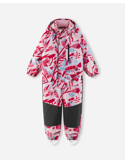 A reliable partner for winter adventures - the children's Reimatec winter overall Muhos! The waterproof material of this overall keeps your child dry, while the warm padding and breathable material ensure comfort even in the coldest weather. Reflective details enhance visibility in the dark. The overall's windproof properties, water and dirt-repellent features, and extremely durable reinforcements at the seat and legs make it an excellent choice for an active child. Thanks to the smooth lining, the overall slips on easily. The overall features a safe, detachable, and adjustable hood, elastic cuffs at the sleeves and legs, a zippered chest pocket, snap-buttoned flap pockets, and an adjustable waist on the inside. Additionally, the overall has detachable, durable silicone foot straps that keep the legs in place even during energetic play.