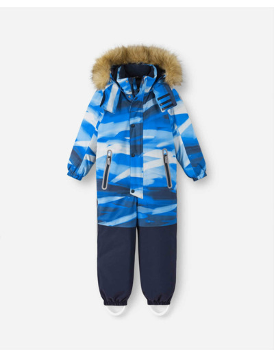 Super warm ReimaTec winter overall made from wonderfully flexible materials. Waterproof, designed for an active child. Straight cut. The child in the picture wearing the frozen blue overall is 105 cm, the one in the black overall is 105 cm, and both are wearing size 104.