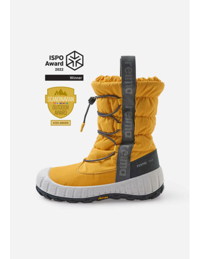 These sporty boots are a sure choice for cold winters. Waterproof children's winter boots can withstand temperatures as low as -30 °C, making them suitable for both snowy and slushy outdoor activities. The boot, utilizing the latest advancements in the field, provides extra support for outdoor play: the Vibram Traction Lug sole, tested by athletes, offers up to 25% more grip. The quickly slip-on boots feature PrimaLoft® insulation for effective warmth. The boots have removable Happy Fit insoles (which facilitate size selection) and a comfortable textile lining.