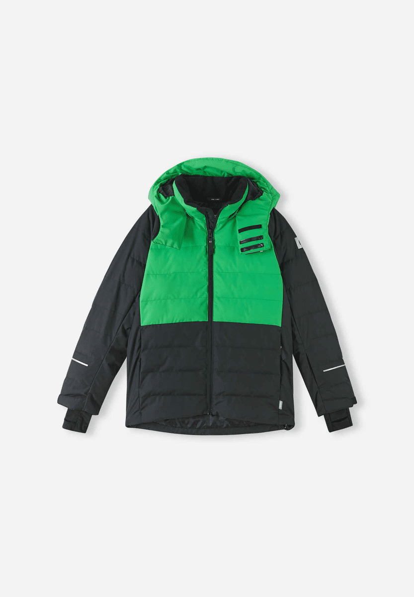 [--Read More--]The sporty youth ski jacket features very warm PrimaLoft® ThermoPlume Eco insulation and is made from durable, partially recycled fibers. Its practical features are suitable for winter sports: adjustable hem and snow skirt keep snow out, and the jacket and pants connector ensures the user stays protected even during vigorous activity. A ski pass can be stored in a convenient sleeve pocket, and adjustable cuffs with thumbholes keep the wrists warm.