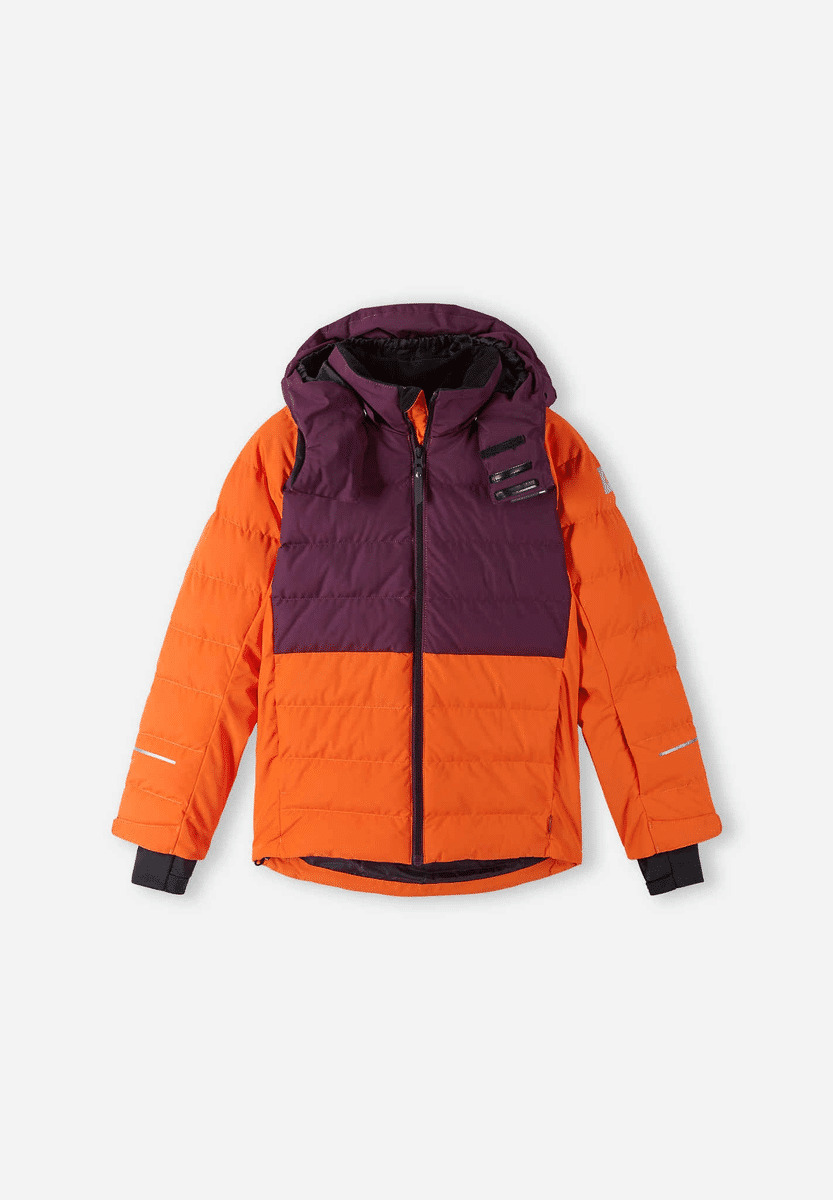 Sporty waterproof winter jacket for skiing and the city. Can be attached to the snow skirt of ski pants. Straight fit.