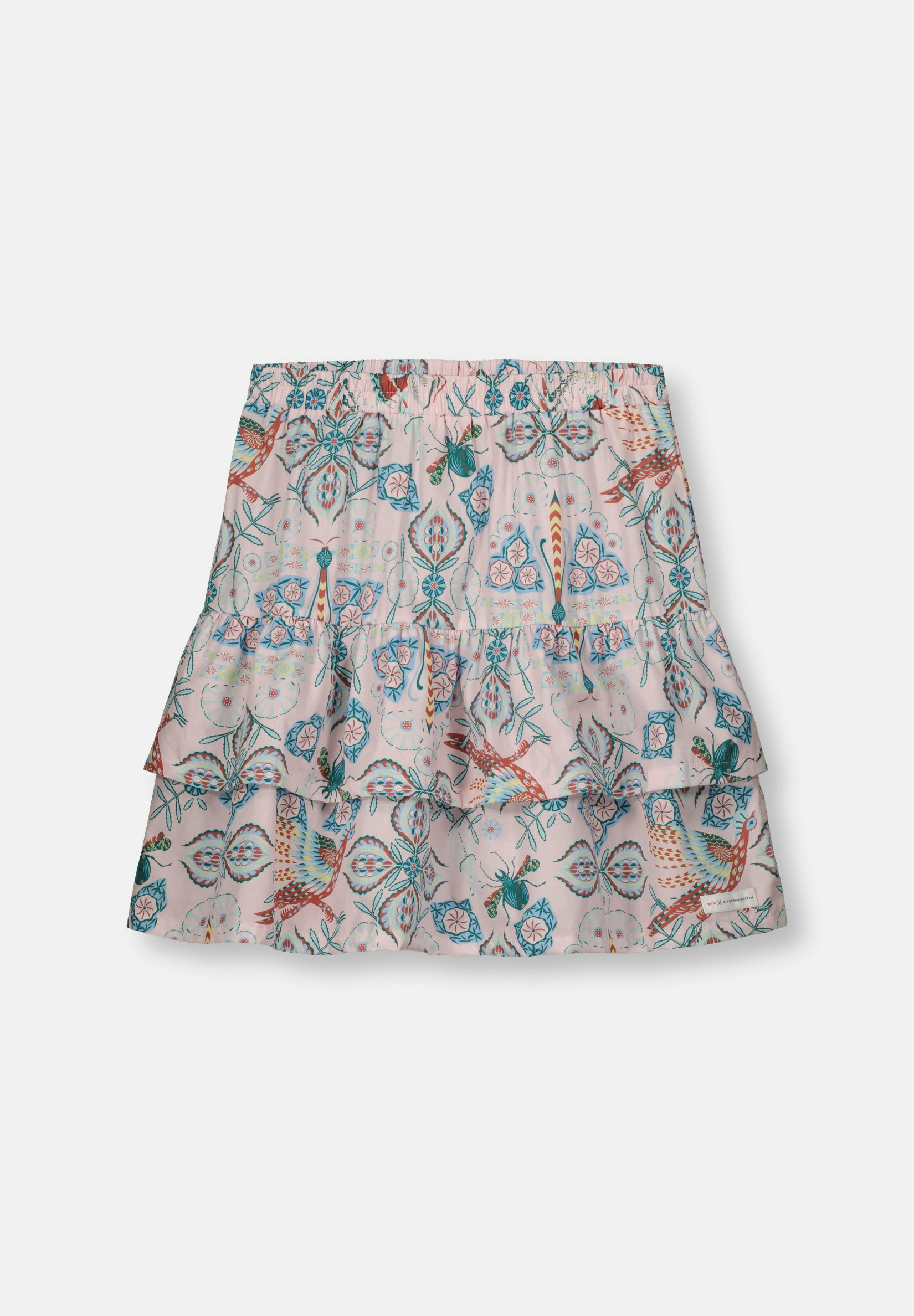 The world of Satu is waiting - perhaps right there in that meadow? The Children's Carnation skirt is made of smooth Italian cotton and sewn in Europe. The skirt's elastic waistband allows for growth and is comfortable to wear. This stunning ruffled skirt is suitable for all celebrations and easily pairs with different tops even in everyday wear. This product is looser than our usual sizing. We recommend choosing one size smaller. The result of Reima's first designer collaboration is the Meadow pattern, created by Klaus Haapaniemi, a world-renowned artist and designer. His signature style features unique, magical, and abundant patterns inspired by Finnish folklore. The Meadow pattern is a tribute to imagination and the child's way of looking at the world.