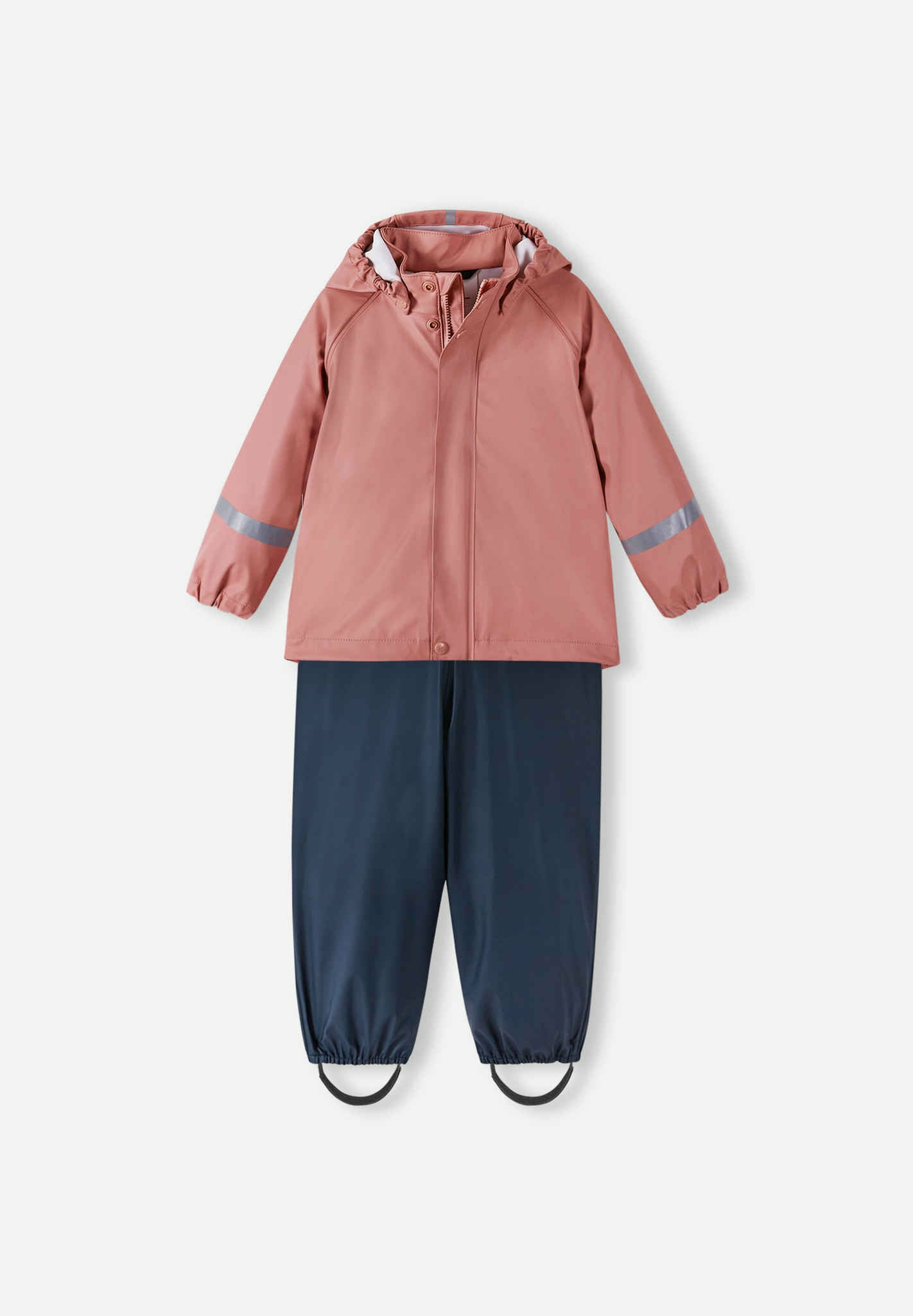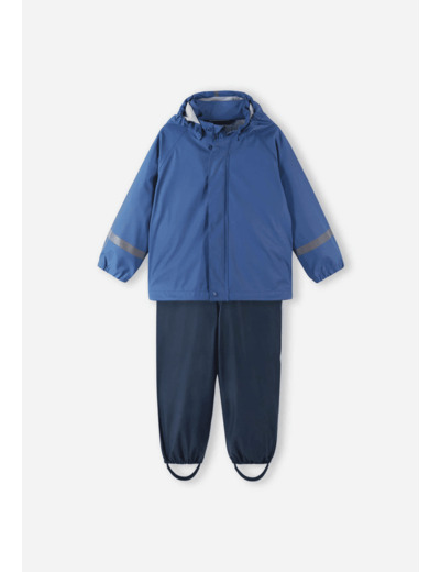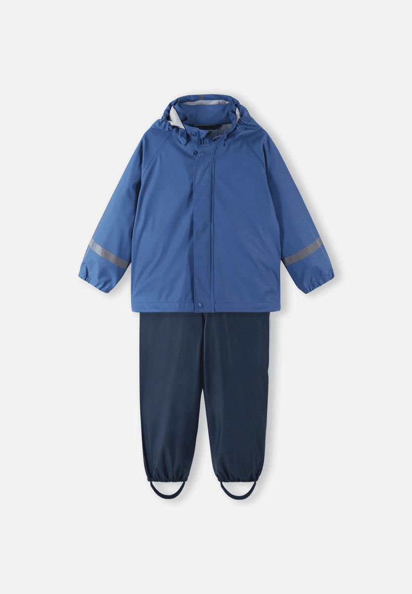 The toddler Tihku rain suit is suitable as is for early autumn rainy weather and with a warm mid-layer to protect against cooler weather. The waterproof welded seams ensure that the child stays dry even in heavy rain. The detachable hood not only protects from rain but is also safe for outdoor play. The rain pants stay securely in place thanks to the flexible suspenders, which also ensure a good fit. The detachable foot straps are easy to slip under rubber boots or waterproof shoes to keep the cuffs in place. The material of the rain suit is flexible and does not contain PVC.