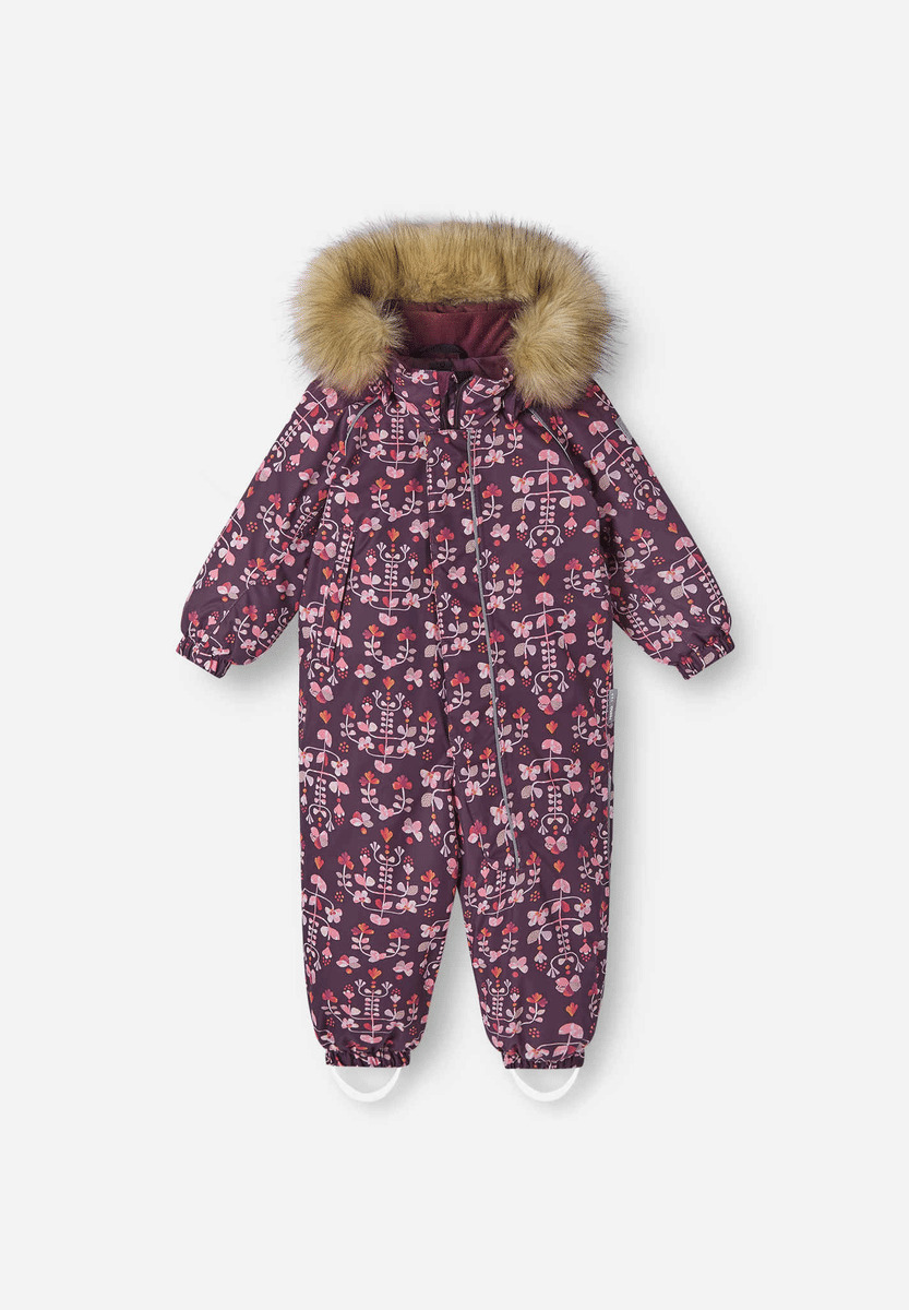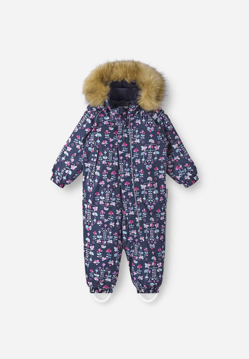 [--Read More--]This easy-care classic overall for small children is suitable for all kinds of winter outdoor activities. Neutral "Best-in-Test" and "Pricerunner" competition juries in Norway and Denmark chose the Reimatec Lappi winter overall as the best toddler winter overall of 2021. The waterproof winter overall is made of breathable and windproof material that also repels dirt. All seams of the overall are taped waterproof, and it has insulation that keeps the bottom warm when sitting in the snow. The smooth polyester lining glides nicely, making it easier to dress and use mid-layer garments. Note that many of Reima's mid-layer garments can be attached to the overall with the handy Play Layers snap fastening. The adjustable hood is attached with snaps, making it safe and easily detachable if it gets caught on something. The edge of the hood has a removable faux fur trim. Durable silicone foot straps keep the cuffs in place. The tumble dryer-safe padded overall is an excellent choice for both winter fun and city walks!