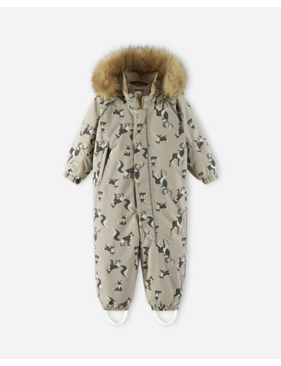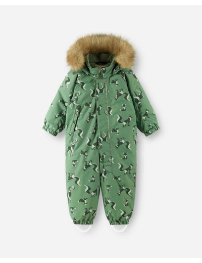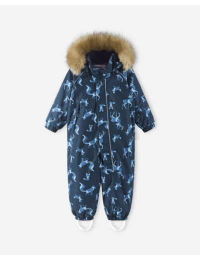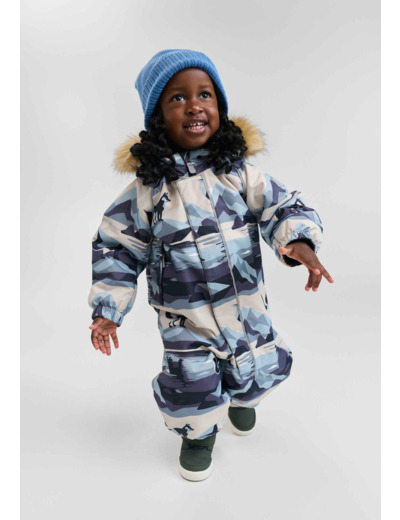 This easy-care classic overall for small children is suitable for all kinds of winter outdoor activities. Neutral "Best-in-Test" and "Pricerunner" competition juries in Norway and Denmark chose the ReimaTec Lappi winter overall as the best toddler winter overall of 2021. The waterproof winter overall is made from breathable and windproof material that also repels dirt. All seams of the overall are taped to be waterproof, and it has insulation that keeps the bottom warm while sitting in the snow. The smooth polyester lining glides nicely, making it easier to dress and use mid-layer garments. The adjustable hood is attached with snap buttons, making it safe and easily detachable if it gets caught on something. The edge of the hood has a detachable faux fur trim. Durable silicone foot straps keep the cuffs in place. The tumble dryer-safe padded overall is an excellent choice for both winter fun and city outings.