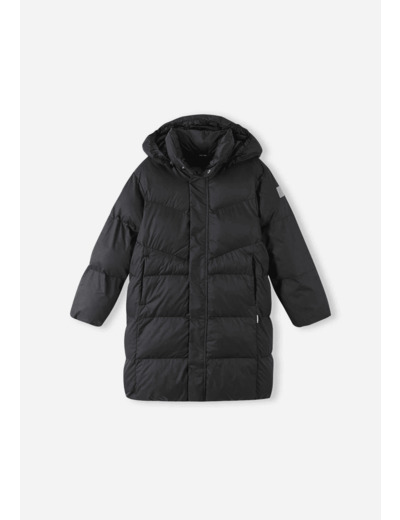 Children's long winter coat with down-like recycled filling. Comfortable, warm, and easy to care for coat.