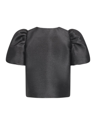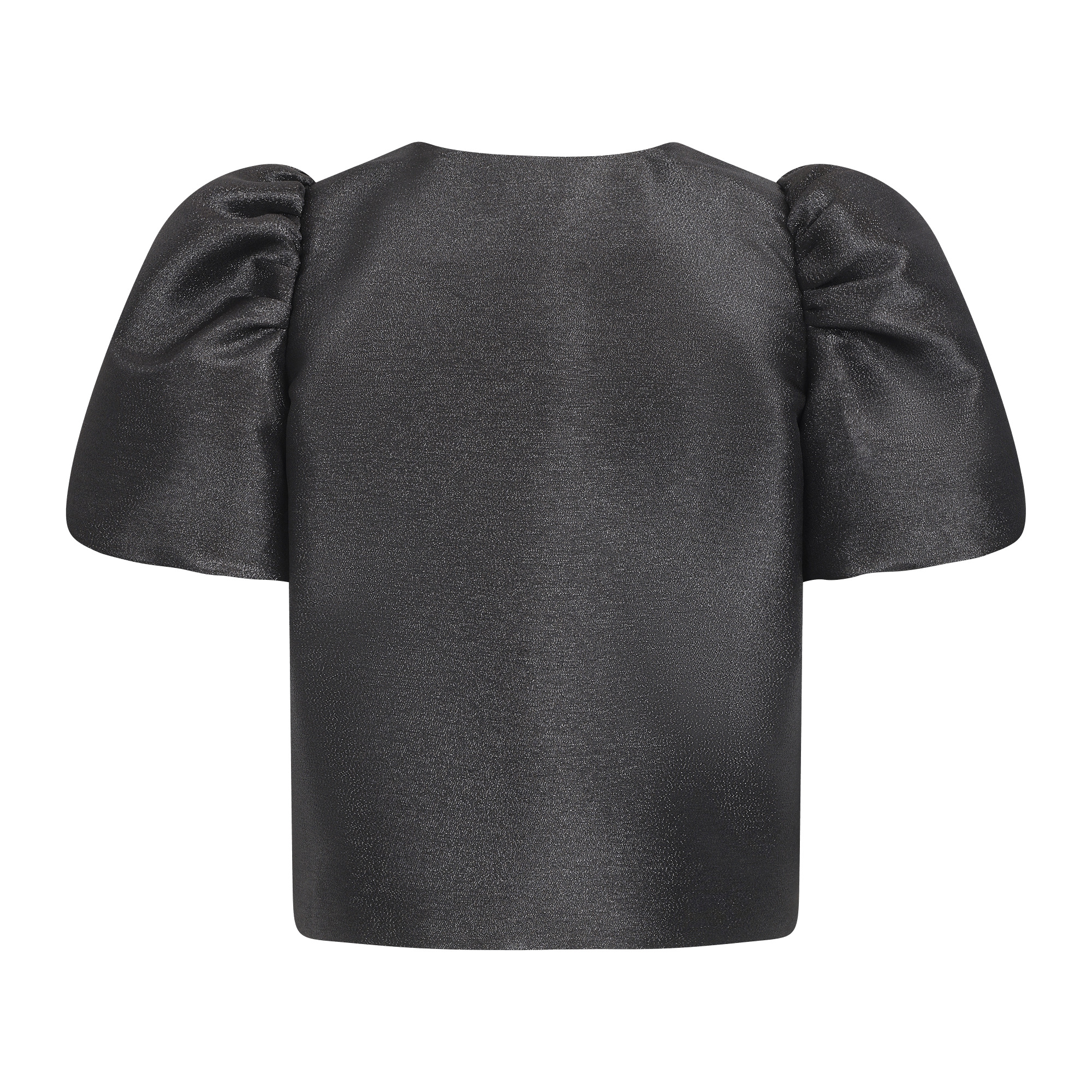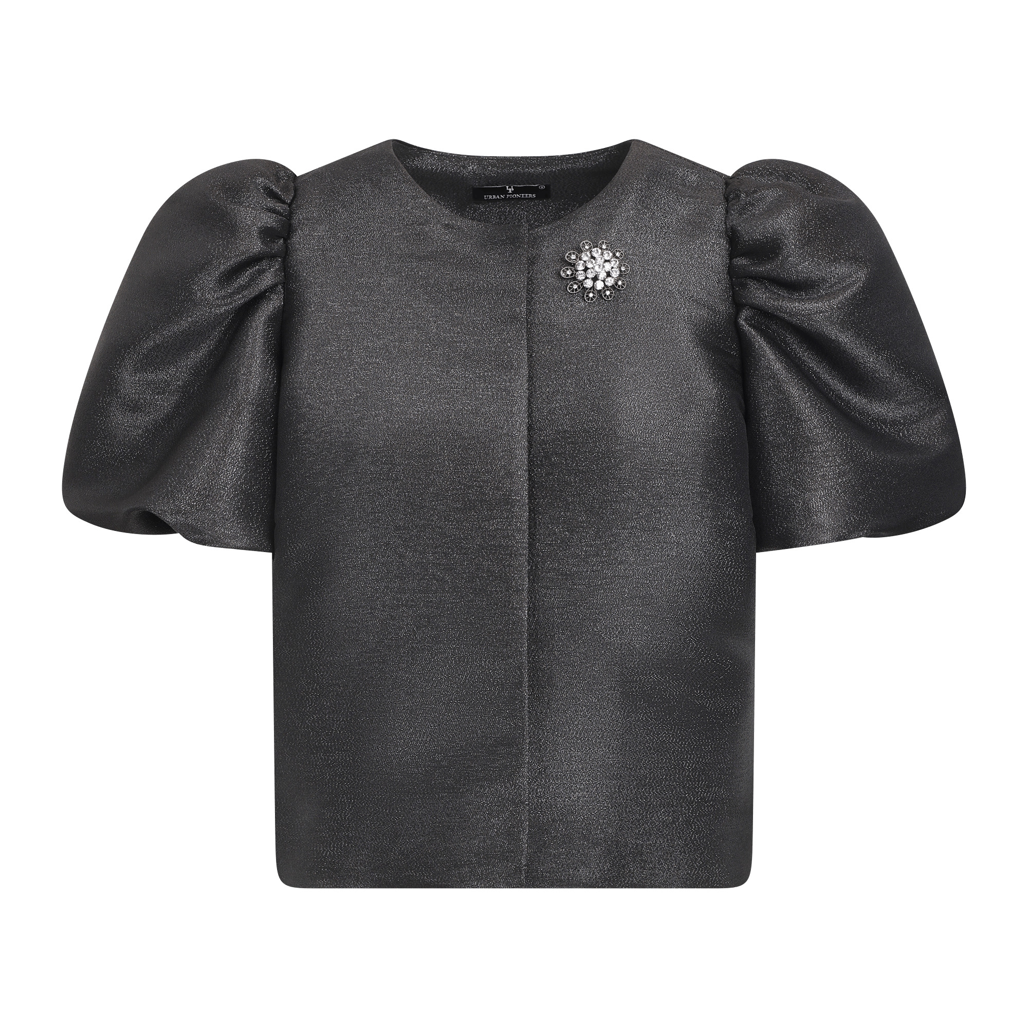 Glitter puffed jacket with glitter finish and dramatic puffed sleeves. Perfect for parties and special occasions.