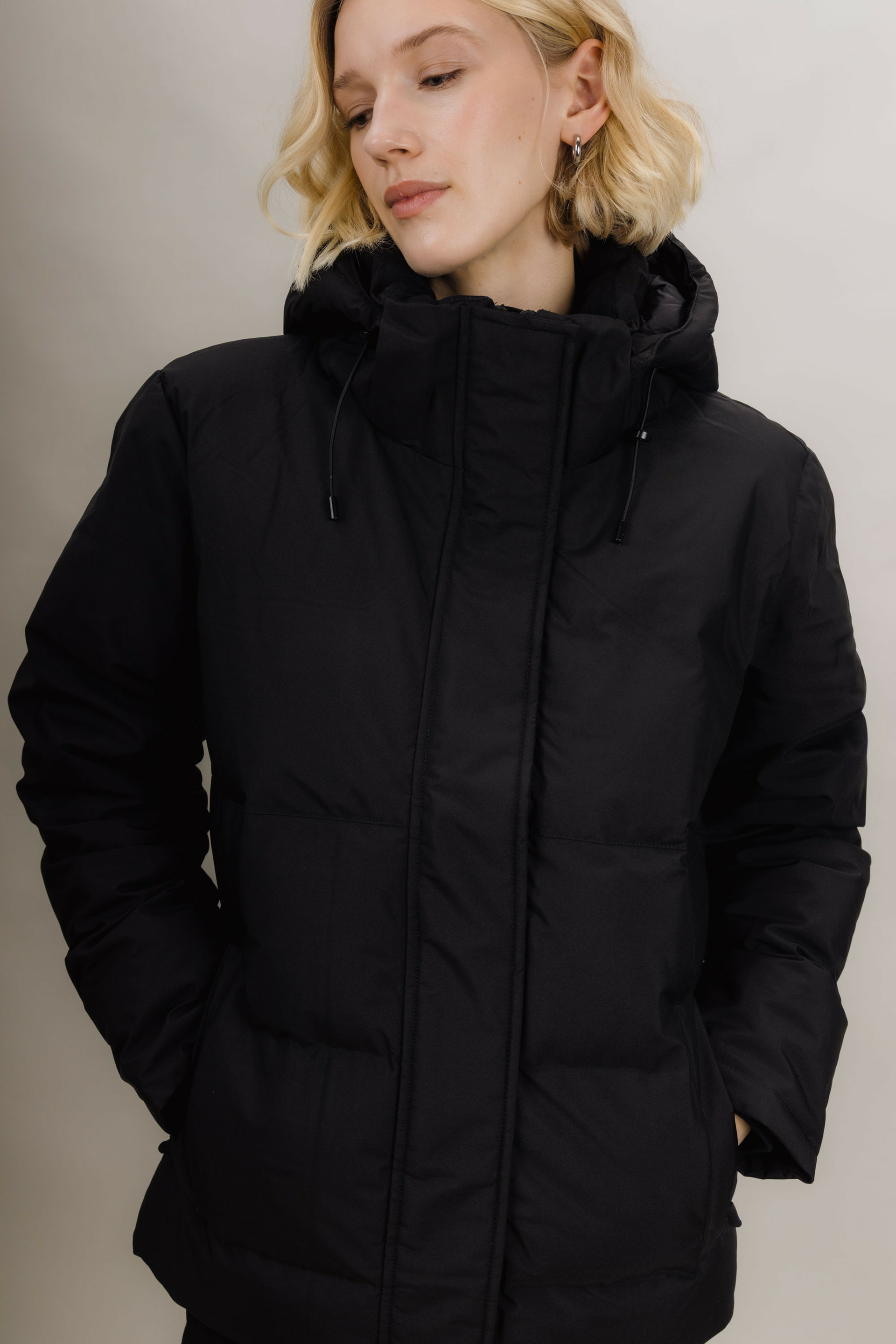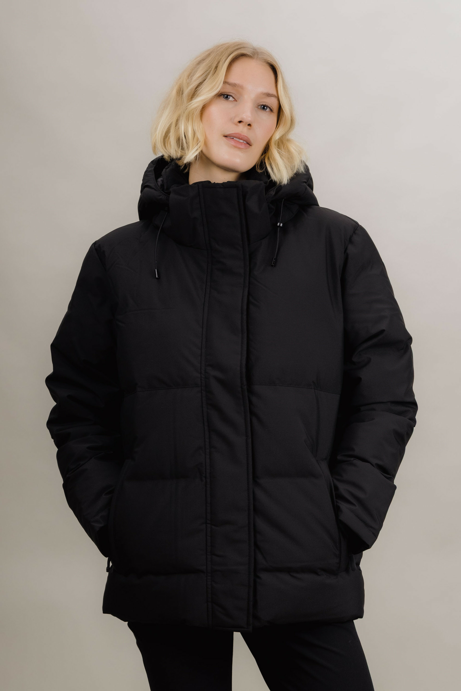 Ida down jacket features a luxurious down and feather filling sourced from non-live, plucked animals in the food industry. The technical welded seams and waterproof fabric ensure you stay dry and comfortable in any weather.