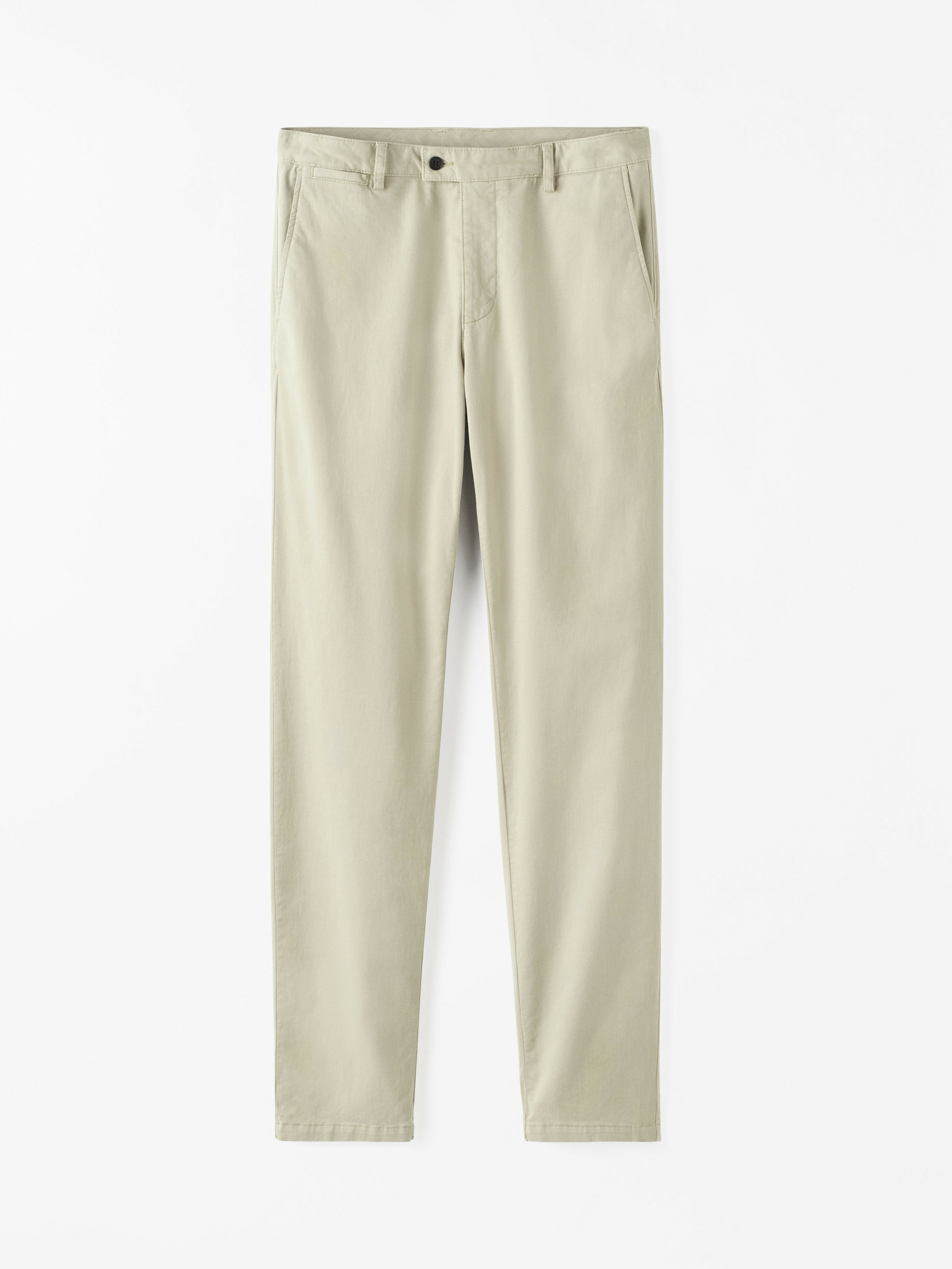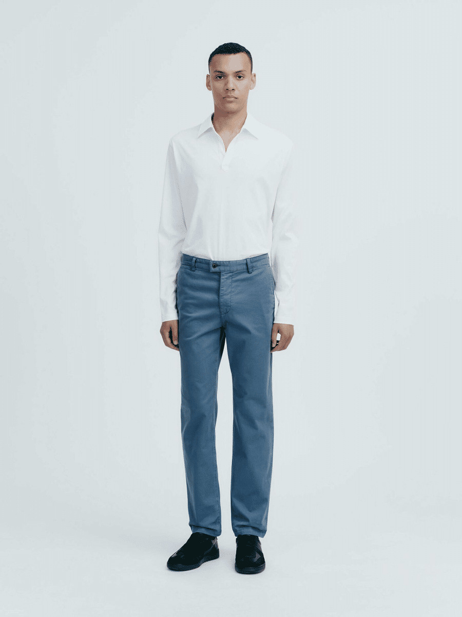 Casual trousers in garment dyed cotton stretch twill Slim, chino-style fit Slight taper Full length Small 1903 sign-off under back pocket Made in Turkey Wash 30 C Wash with similar colours Wash and iron inside out Close zippers before washing