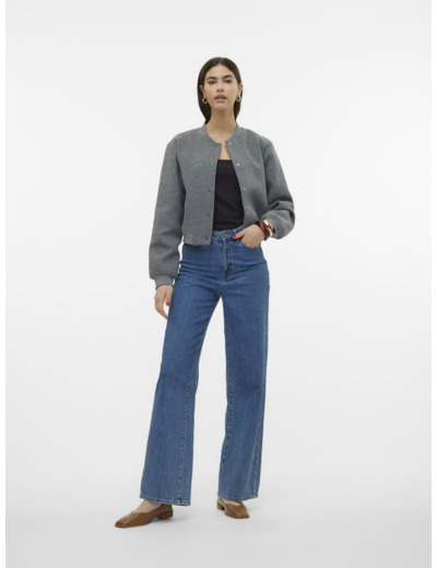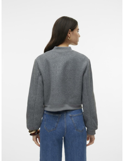 Featuring a classic O-neck, long sleeves with ribbed cuffs, and a convenient snap button closure, this bomber jacket balances comfort and structure. Its cropped cut adds a trendy touch, ideal for layering or wearing alone as a statement piece.