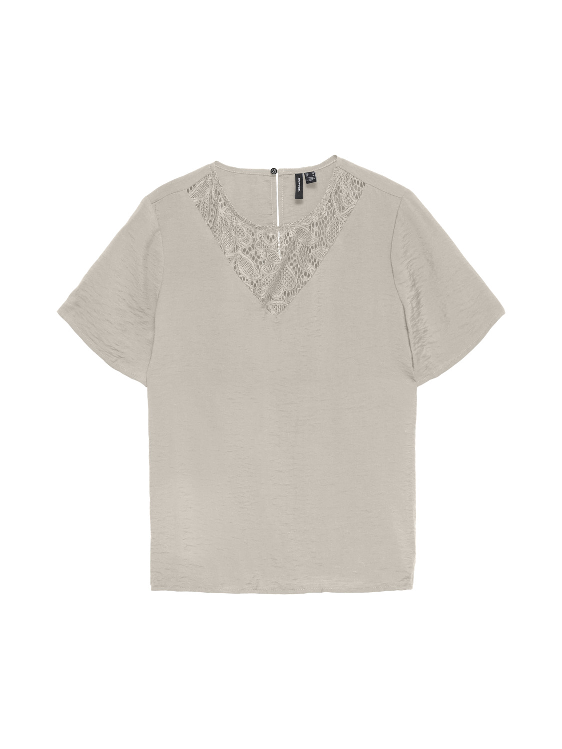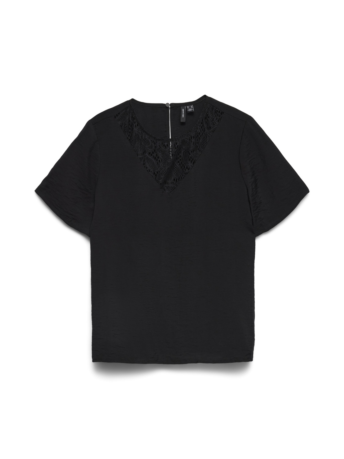 This top features a regular fit, O-neck collar, short sleeves, and a discreet zipper closure. The lace detail adds a unique texture, elevating a basic piece into a statement essential.