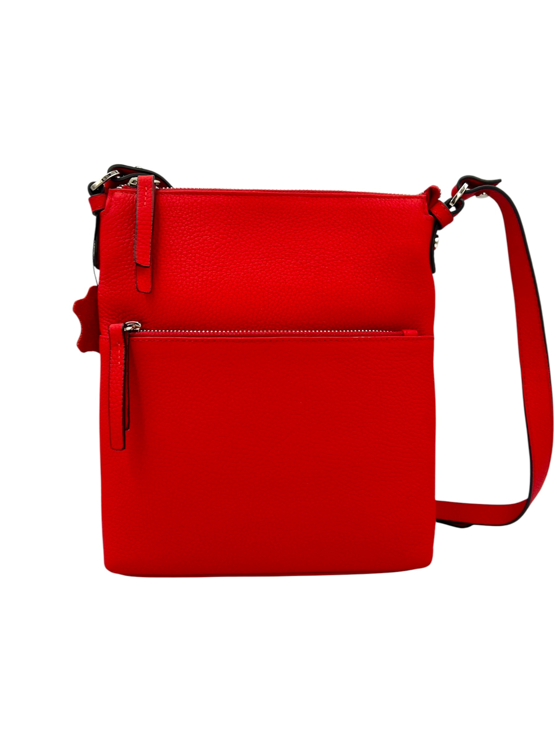 Edessä tilava vetoketjullinen tasku. Mattapintaista laadukasta nahkaa.