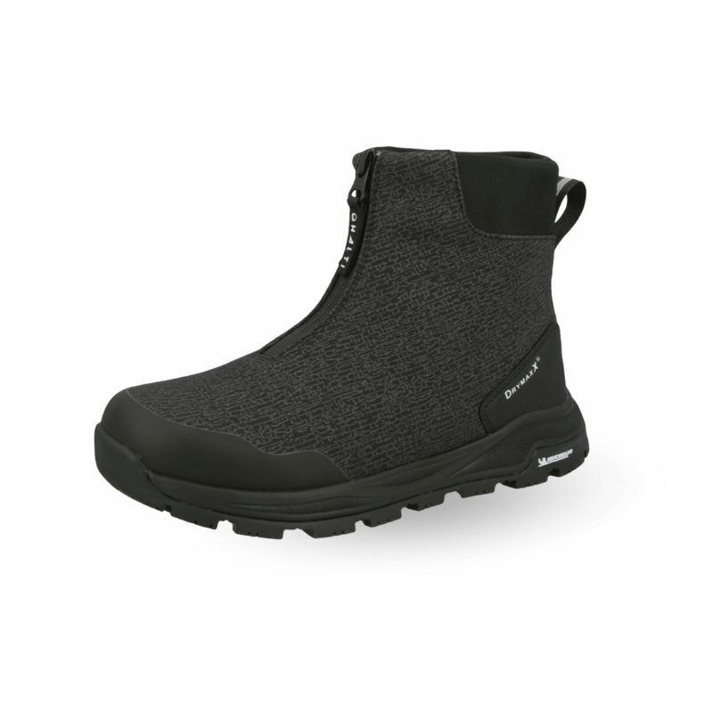 vedenpitävissä kengissä yhdistyy käytännöllisyys ja tyyli. Edessä oleva vetoketju tekee kengistä helppokäyttöiset ja nopeasti puettavat.