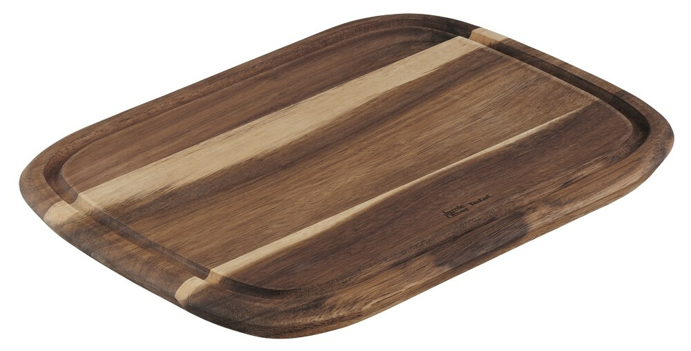 Tämä upea akaasiapuinen leikkuulauta on ehdoton vakiotuote keittiössä, mutta lisäksi se on niin kaunis, että se ehdottomasti ansaitsee paikkansa pöydälläkin. Tämän ihanan pienen laudan avulla voit valmistella täydellisesti hedelmiä aamiaiseksi, viipaloida chilejä ja poistaa niistä siemeniä, pilkkoa pähkinöitä ja leikata sitrushedelmälohkoja koristeeksi tai loihtia ansaitun gin tonicin, kun ruoka on valmista! Pidä se käsillä se tulee keittiössä tarpeeseen kerta kerran jälkeen, ja lisäksi se näyttää upealta työtasolla. Jamie Oliver.