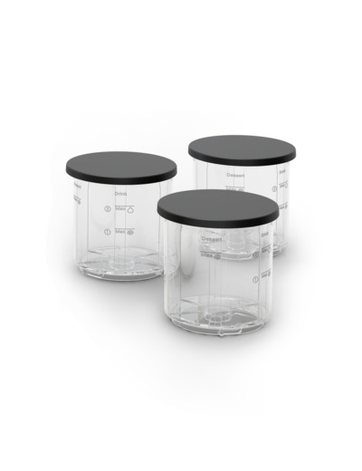 Koneen mukana toimitetaan kolme 480 ml:n Tritan-kulhoa, joihin mahtuu yhteensä 1,4 litraa jäätelöä perheen ja ystävien kanssa yhdessä nautittavaksi.