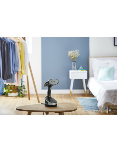Tefal Access Steam Force on innovatiivinen höyrystin, jonka avulla voit huoltaa helposti kaikki kodin tekstiilit. Se poistaa rypyt nopeasti vaatteista ja muista kodin tekstiileistä sekä puhdistaa ja raikastaa esimerkiksi takit, verhoilut, tyynyt, peitot ja auton istuimet. Tehokkaan höyryntuoton ansiosta Access Steam Force puhdistaa ja tappaa jopa 99,99 % tekstiilien viruksista ja bakteereista. Höyry poistaa tehokkaasti myös allergeenit ja pölypunkit, parantaen tuntuvasti kotisi hygieniatasoa. Ja mikä parasta, se puhdistaa täysin luonnollisesti, kokonaan ilman kemikaaleja. Tefal Access Steam Force on innovatiivinen höyrystin, jonka avulla voit huoltaa helposti kaikki kodin tekstiilit. Se poistaa rypyt nopeasti vaatteista ja muista kodin tekstiileistä sekä puhdistaa ja raikastaa esimerkiksi takit, verhoilut, tyynyt, peitot ja auton istuimet. Laitteen erinomainen suorituskyky perustuu 2 000 W:n tehoon, jatkuvan höyryntuoton määrään jopa 30 g/min ja lisähöyryn tuottoon, joka on jopa 90 g/min. Tehokkaan höyryntuoton ansiosta Access Steam Force puhdistaa ja tappaa jopa 99,99 % tekstiilien viruksista ja bakteereista. Höyry poistaa tehokkaasti myös allergeenit ja pölypunkit, parantaen tuntuvasti kotisi hygieniatasoa. Ja mikä parasta, se puhdistaa täysin luonnollisesti, kokonaan ilman kemikaaleja. Laite kuumenee käyttövalmiiksi erittäin nopeasti, vain 25 sekunnissa, joten pääset käsittelemään tekstiilit ilman odottelua. Lämpenevä höyrysuulake poistaa tekstiileistä kosteuden, joten voit pukea silittämäsi vaatteet päälle heti käsittelyn jälkeen. Laitteen mukana toimitettava mikrokuituharja poistaa pölyn ja irtolian tehokkaasti esimerkiksi vaatteista, tekstiileistä, sohvasta, vuodevaatteista ja verhoista. Access Steam Force sopii käytettäväksi kaikilla tekstiileillä, myös kaikkein herkimmille kankaille. Vesisälilön tilavuus on 200 ml, mikä riittää 10 minuutin yhtäjaksoiseen höyrytykseen. Säiliö on helppo irrottaa täyttää. Automaattinen virrankatkaisu lisää turvallisuutta ja säästää energiaa.