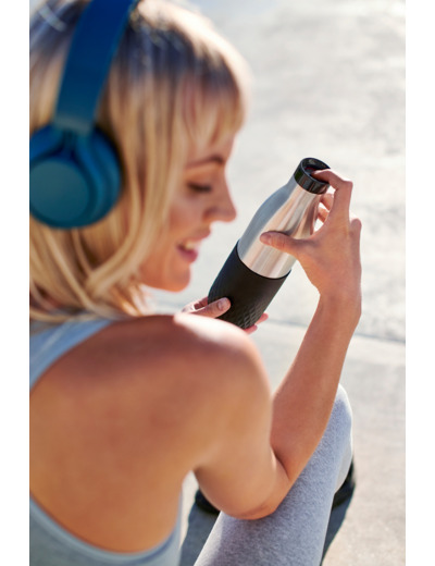 Jätä hyvästit kertakäyttöisille muovi- ja panttipulloille! BLUDROP-juomapullon avulla suojelet ympäristöä tyylikkäästi! Pullo on valmistettu ruostumattomasta teräksestä, jonka käyttöikä on pitkä, joten voit käyttää sitä yhä uudelleen. Lakatut ja silikonipäällysteiset pullot ovat saatavina erilaisina trendikkäinä värivaihtoehtoina. Kapea muoto tarjoaa hyvän, ergonomisen pidon, ja 100 %:n tiivis kansi helpottaa juomien ottamista mukaan ilman vuotamisen vaaraa. Kannessa on myös 360° aukko, joten voit juoda pullon joka puolelta. Bludrop sopii kaikentyyppisille juomille, ja sen erinomaisen eristyskyvyn ansiosta pullo voi pitää juoman lämpimänä jopa 12 tuntia ja kylmänä jopa 24 tuntia. Juomapullo voidaan pestä astianpesukoneessa, joten se on helppo pitää hygieenisenä ja puhtaana. Pullo on valmistettu pitkäikäisestä, ruostumattomasta teräksestä 360° aukon ansiosta voit juoda pullon joka puolelta.