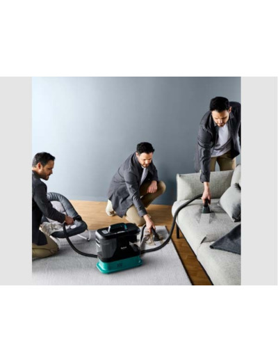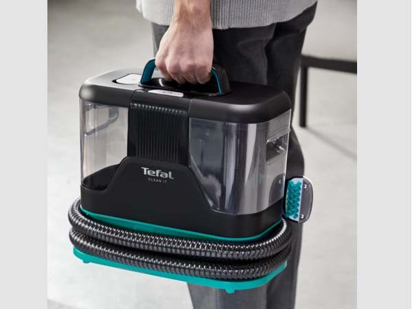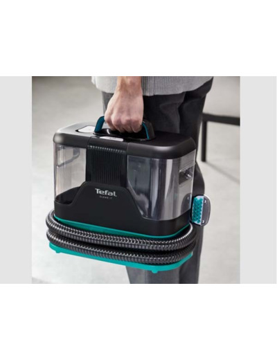 Tefal Clean It -tekstiilipesuri yhdistää huippuluokan märkäpuhdistuksen ja voimakkaan imutehon, jolloin lian ja tahrojen poistaminen tekstiileistä käy vaivattomasti. Käytön jälkeen pinnat ovat raikkaan puhtaat, ilman pesuainejäämiä tai ylimääräistä kosteutta. Laite on helppokäyttöinen: kaada vain pieni määrä puhdistusainetta puhdasvesisäiliöön. Suihkuta vesi-puhdistusaineseosta tekstiilissä olevaan tahraan painamalla liipaisinta, harjaa puhdistettavaa pintaa ja imuroi kunnes tahra häviää. Laite imee pinnan lähes kuivaksi. 13 kPa:n imupaineen ansiosta vettä imeytyy litran verran viiden sekunnin välein. Tekstiileihin jää raikas tuoksu.