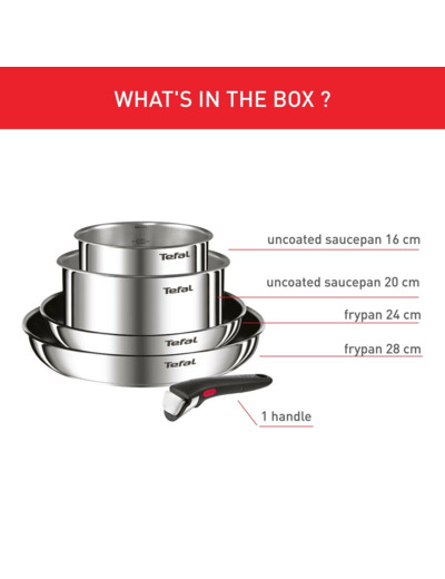Kahvassa on kolmen kohdan turvajärjestelmä, ja se kestää jopa 10 kg:n painon. Tefal myöntää sille 10 vuoden takuun. Irrotettavan kahvan ansiosta Ingenio-sarjan tuotteita on helppo säilyttää, ja tuotteet vievät säilytyksessä vain vähän tilaa, koska ne on suunniteltu pinottaviksi.