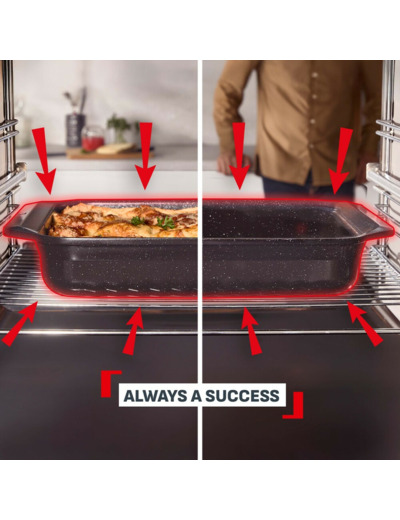 Excellence Ceramic -uunivuoissa on kestävä valualumiinirunko, jonka paksuus on 3,5 mm, sekä valetut kahvat, jotka takaavat tukevan otteen. Keraaminen pinnoite kestää sekä lämpöä että naarmuja, säilyttäen uunivuoan tyylikkään ulkonäön ja toiminnallisuuden pitkään. Uunivuoat ovat tyylikkään mustia, ja niissä on hienovaraisia harmaita pilkkuja. Vuokaa on saatavilla kahdessa eri koossa: 29x22 cm ja 34x24 cm. Uunivuoat kestävät jopa 250 °C lämpötilan. Tyylikäs muotoilu mahdollistaa sen, että vuoka voidaan siirtää uunista suoraan tarjoilupöytään.