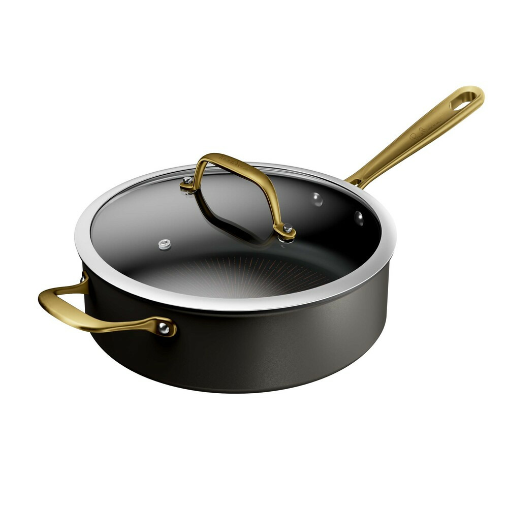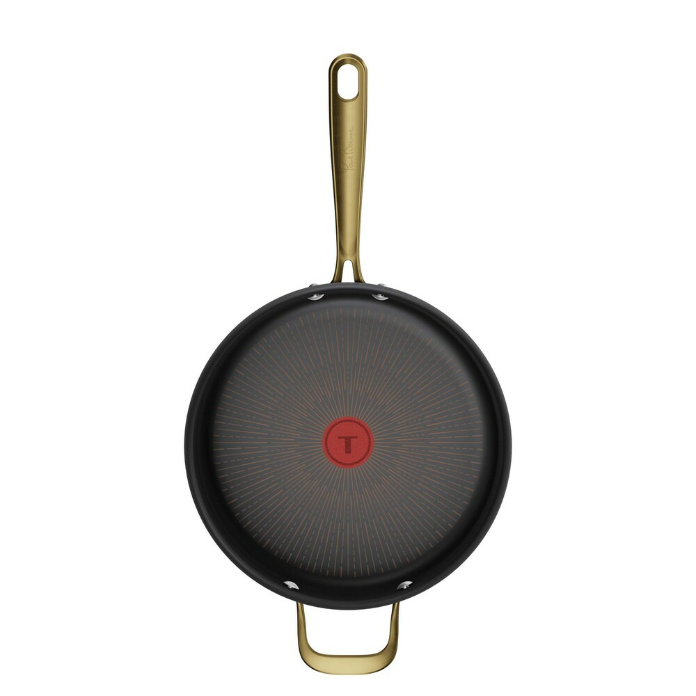 Inspiroituneena mestarikokeista ja suunniteltu intohimoisille ruoanlaittajille, Paul Bocuse by Tefal tarjoaa sarjan korkealaatuisia paistinpannuja ja kasareita, jotka yhdistävät kestävyyden, eleganssin ja poikkeuksellisen toiminnallisuuden. Koe uusi taso ruoanlaitossa Paul Bocuse by Tefal -malliston avulla kokoelma paistinpannuja ja kasareita, jotka ovat ammattilaiskokkien testaamia ja hyväksymiä. Tyylikäs ja suorituskykyinen muotoilu 100 % kierrätetystä materiaalista valmistetulla alumiinirungolla ja Pro Tech -pinnoitteella, joka kestää jopa 8 kertaa pidempään, nämä pannut ovat sekä kestäviä että suorituskykyisiä. Tyylikäs "grey coal" -värinen pinta, ergonominen ruostumattomasta teräksestä valmistettu kahva, jossa on kultainen messinkiefekti ja Paul Bocuse -allekirjoitus, tuovat keittiöösi ylellisyyttä. Pannujen syvä muoto tekee niistä monipuolisia ja ihanteellisia kaikkeen lihan ruskistamisesta kastikkeiden valmistukseen. Pro Tech -pinnoite Kuusikerroksinen non-stick ptfe -pinnoite, joka on vahvistettu erittäin kestävillä täytemateriaaleilla ja kuparipinnoitteella, tarjoaa jopa 8 kertaa pidemmän käyttöiän kuin perinteiset pinnoitteet. Säästä aikaa ja energiaa Thermo-Signal- ja Thermo-Fusion-teknologioilla Kaikissa Paul Bocuse -sarjan non-stick paistinpannuissa on Tefalin innovatiivinen Thermo-Signal-lämpöindikaattori, joka kertoo tarkalleen, milloin pannu on valmis käytettäväksi. Tämä takaa täydellisen paistopinnan ja tasaisen kypsennyksen joka kerta. Lisäksi Thermo-Fusion Plus -induktiopohja varmistaa nopean ja tasaisen lämmönjakautumisen, mikä säästää sekä aikaa että energiaa keittiössä. Liedeltä uuniin Nämä pannut sopivat kaikille liesityypeille, mukaan lukien induktioliedet. Lisäksi pannut kestävät uunikäyttöä jopa 210 °C asti. Huomioithan, että kahva kuumenee uunissa käytä aina lämpöä eristäviä patalappuja tai uunikintaita, kun otat pannun uunista. Helppo puhdistaa Non-stick-pinnoitteen ansiosta ruokajäämien ja lian puhdistaminen käsin on erittäin helppoa. Messinkisten kahvojen PVD-käsittelyn vuoksi paistinpannut tulee aina pestä käsin. Paul Bocuse by Tefal kunnianosoitus ruoanlaiton intohimolle Paul Bocuse by Tefal ei ole vain paistinpannu se on kunnianosoitus ruoanlaiton intohimolle. Olitpa kokenut kokki tai innokas kotikokki, nämä pannut inspiroivat sinua luomaan kulinaarisia mestariteoksia tarkkuudella ja tyylillä.