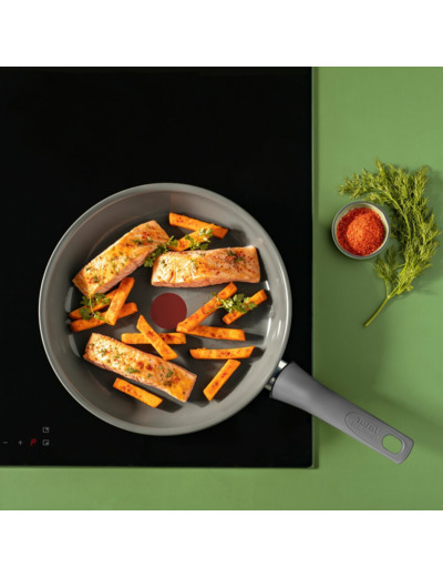 Vähemmän ympäristövaikutuksia, enemmän hyvää ruokaa! Tefalin (RE)NEWALissa on keraamisesti pinnoitettujen keitto- ja paistoastioiden innovaatio ruoan valmistamiseksi aivan uudella tavalla. Valmistettu Ranskassa materiaaleista, joilla on tavallista pienemmät ympäristövaikutukset. Tuotteen alumiinirunko on valmistettu 100-prosenttisesti kierrätetystä materiaalista*, mikä tarkoittaa pienempää ympäristöjalanjälkeä. Turvallinen ja kestävä keraaminen tarttumaton pinnoite estää ruokaa tarttumasta pannuun tai keittoastiaan kypsennyksen aikana, vaikka rasvaa tai öljyä käytettäisiin vain vähän tai ei ollenkaan. Täydellinen tuoreiden ja terveellisten aterioiden valmistukseen. (RE)NEWAL on myös yhteensopiva kaikkien keittotasojen kanssa, mukaan lukien induktio. Siinä on älykäs Thermo-Signal-lämpötilailmaisin, joka vaihtaa väriä, kun lämpötila on täydellinen kypsennyksen aloittamiseen. (RE)NEWALissa ei ole tingitty tarttumattomuudesta eikä helppokäyttöisyydestä, joten sekä astian puhdistaminen että herkullisen ruoan valmistaminen on helppoa.