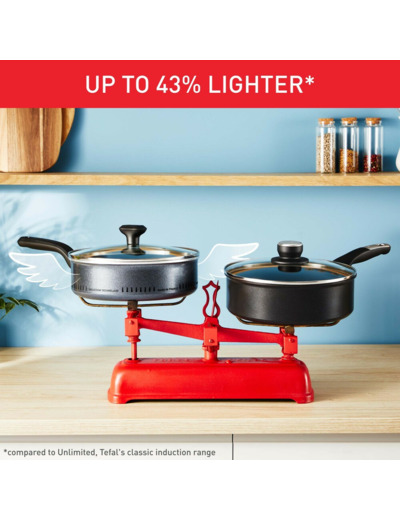 Tefalin SoLight-sarjan avulla voit valmistaa ruokaa helposti ja nopeasti. Kevyen rakenteen ja ergonomisten kädensijojen ansiosta keitto- ja paistoastioiden käsittely sujuu vaivattomasti. Light Tech ?tekniikka takaa keveyden lisäksi myös nopean lämpenemisen. Sarjan tuotteet sopivat käytettäviksi kaikentyyppisillä liesillä, myös induktioliedellä. Sarjan tuotteissa on lisäksi älykäs Thermo-Signal-lämpötilailmaisin, joka vaihtaa väriä ja muuttuu täysin punaiseksi, kun lämpötila on optimaalinen ruoanvalmistuksen aloittamiseen. Näin saat helposti täydellisen paistopinnan, rakenteen ja maun. Titaanivahvistetun tarttumattoman pinnoitteen ansiosta ruoka ei pala kiinni ja paistamiseen tarvitaan vain vähän tai ei lainkaan rasvaa. Sarjaan kuuluu useita erityyppisiä paistinpannuja ja kattila. Kattilaan ja paistokasariin on saatavilla myös kannet. Tefalin kevyin keitto- ja paistoastiasarja Tarttumaton titaanivahvistettu pinnoite