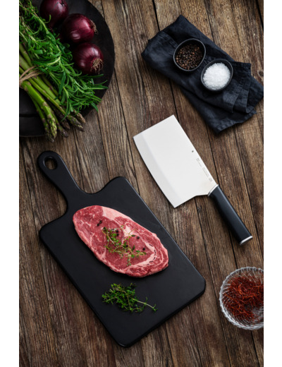 WMF Kineo -sarjassa on 9 erilaista veistä yleisveitsestä kokkiveitseen ja kiinalaiseen kokkiveitseen. Valmistuksessa on käytetty karkaistua ruostumatonta terästä, minkä ominaisuudet ovat erinomaiset. Patentoidun WMF Performance Cut -teknologian ansiosta veitsien terät pysyvät terävinä päivä ja leikkaus toisensa jälkeen. Kineettinen ergonominen muotoilu yhdessä laadukkaan teräskahvan kanssa varmistaa vakaan ja mukavan otteen sekä tasapainoisen tuntuman leikattaessa, pilkottaessa ja paloiteltaessa. WMF Kineo -veitsisarjaan kuuluvan kiinalaisen kokkiveitsen leveä, vahva terä liukuu tasaisesti kalan ja lihan läpi. Paloittelet sillä myös kovimmatkin vihannekset. Lisäksi kokkiveitsi helpottaa mm. yrttien silppuamista. Sitä voidaan voidaan käyttää mainiosti myös lihan mureuttamiseen. Veitsen terän pituus on 15 cm ja kokonaispituus on 28 cm. Käsinpesu säilyttää veitsen pidempään terävänä. Tuote on valmistettu Saksassa. Performance Cut - ainutlaatuinen terävyys, joka kestää pidempään Erikoisteräteräs